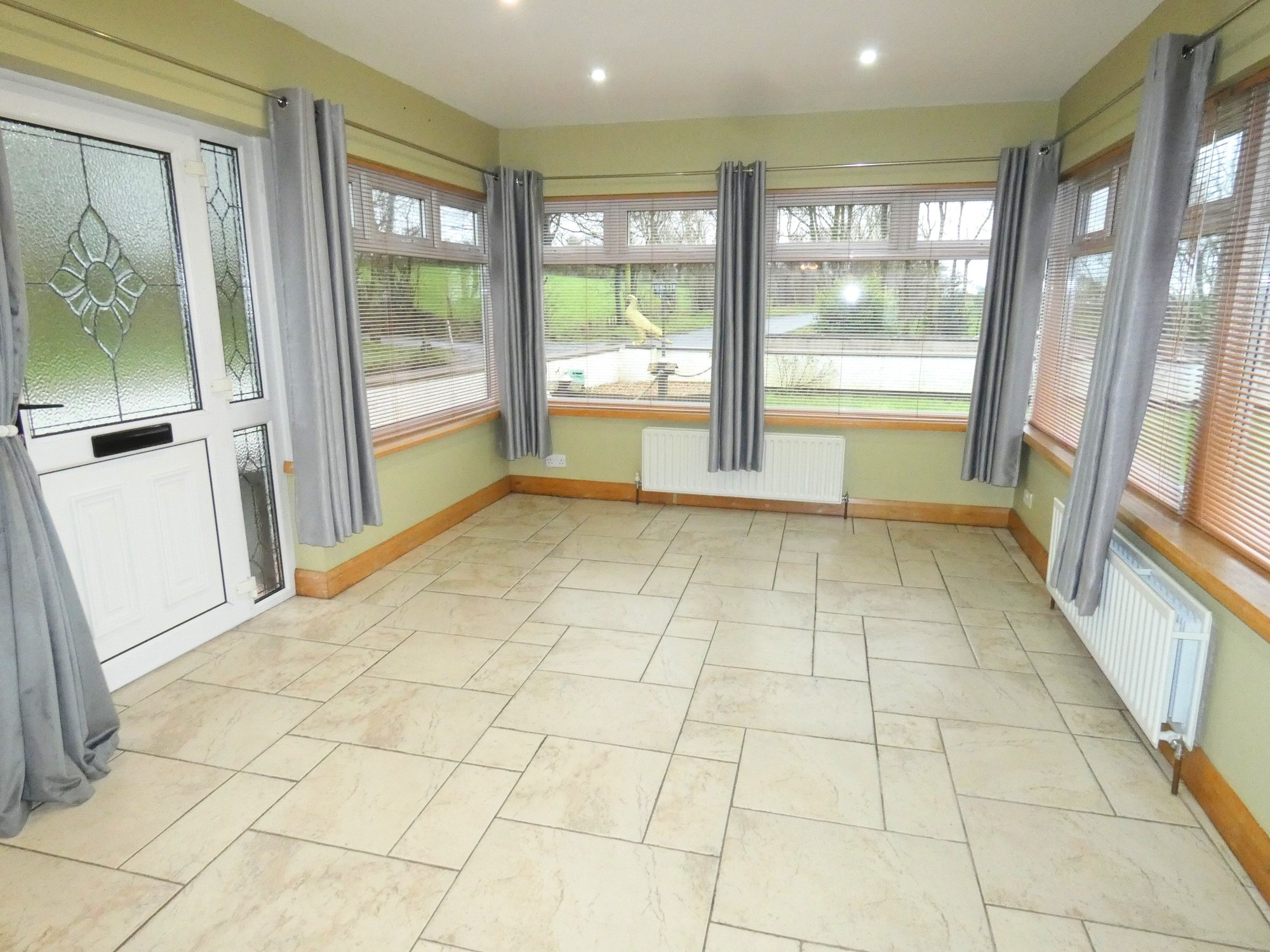Partly glazed upvc front door leading into the reception hall/sun room with super views over the gardens and the surrounding area, tiled floor, recessed ceiling spotlights and open plan to the kitchen/dinette.