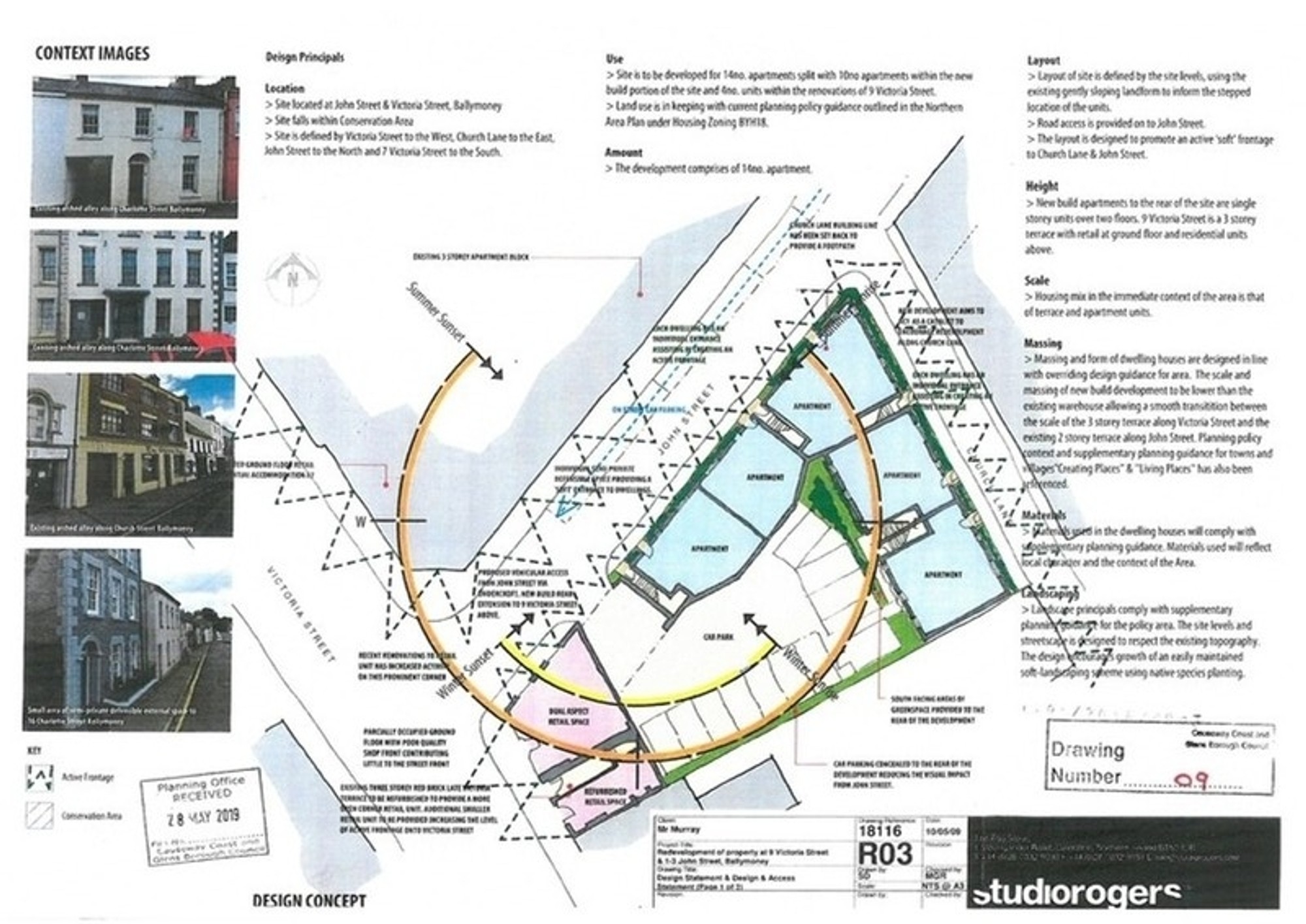 Previous planning applications included D/2006/0484/F (for a three storey block of apartments); D/2006/0505/DCA relating to the demolition of the outbuildings to the rear of number 9 Victoria Street; D/2014/0101/F relating to alterations to number 9 for apartments and 10 further apartments to the rear.