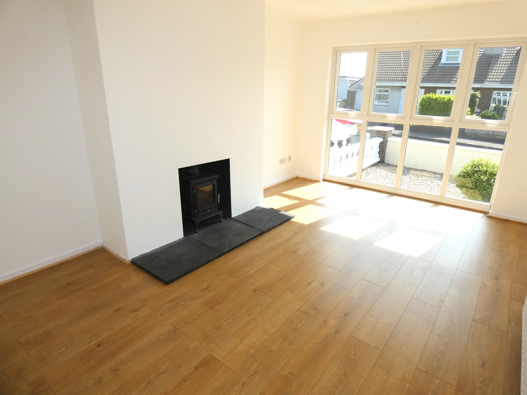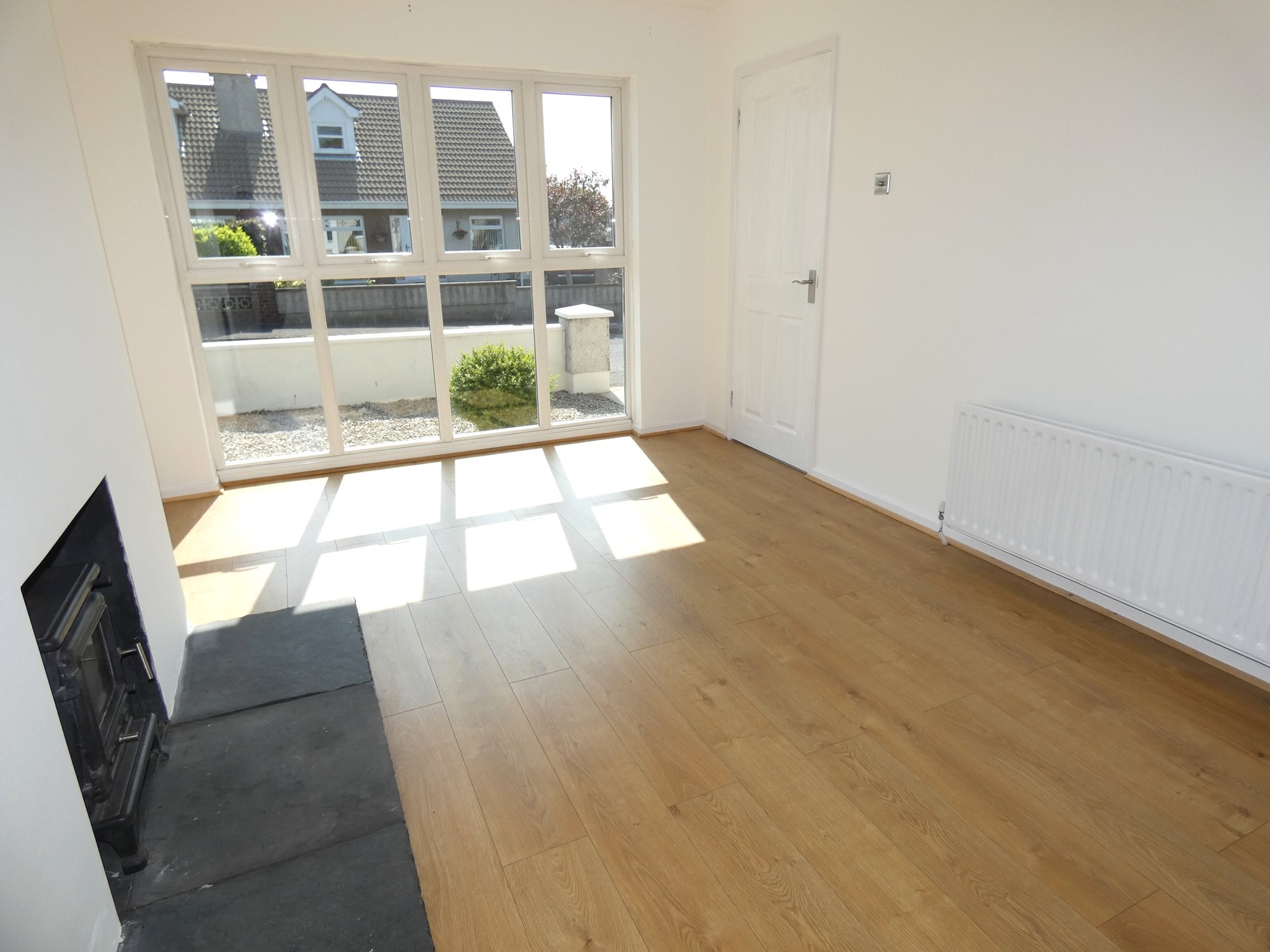 Inset stove area with a slate hearth, feature large floor level glazed window overlooking the avenue, attractive wooden flooring, T.V. point and a dimmer switch.