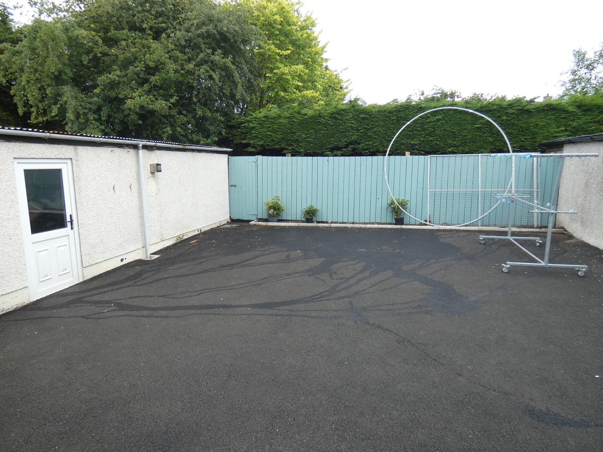 The hard landscaped and southerly orientated rear garden is fully enclosed, private and mostly finished in tarmac with a border for shrubs.