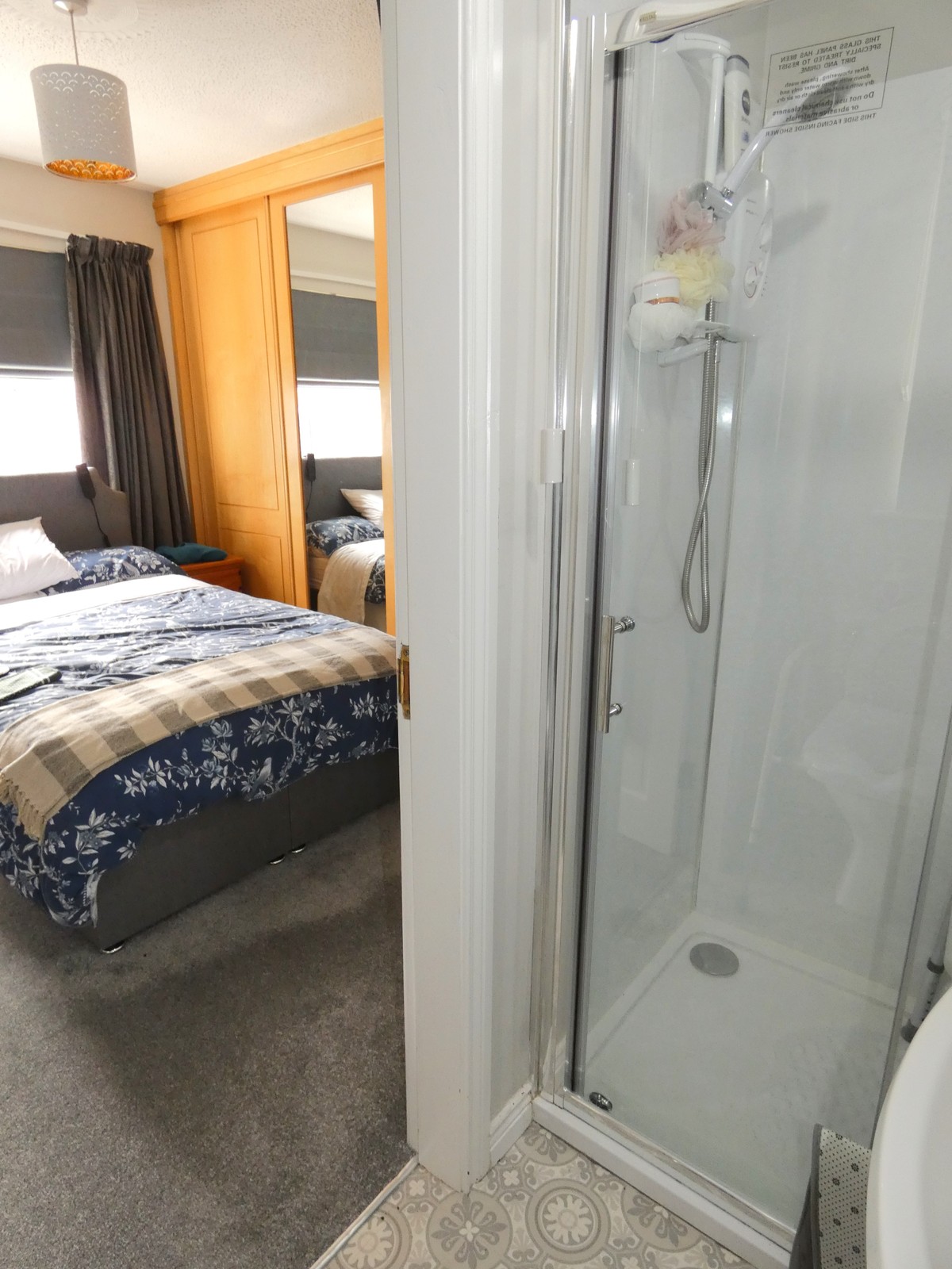 (size including the ensuite and the built in bedroom furniture) fitted sliderobes, contemporary fitted upright radiator and an Ensuite with a w.c, a pedestal wash hand basin, shaver point and a spacious panelled shower cubicle with a Redring electric shower.