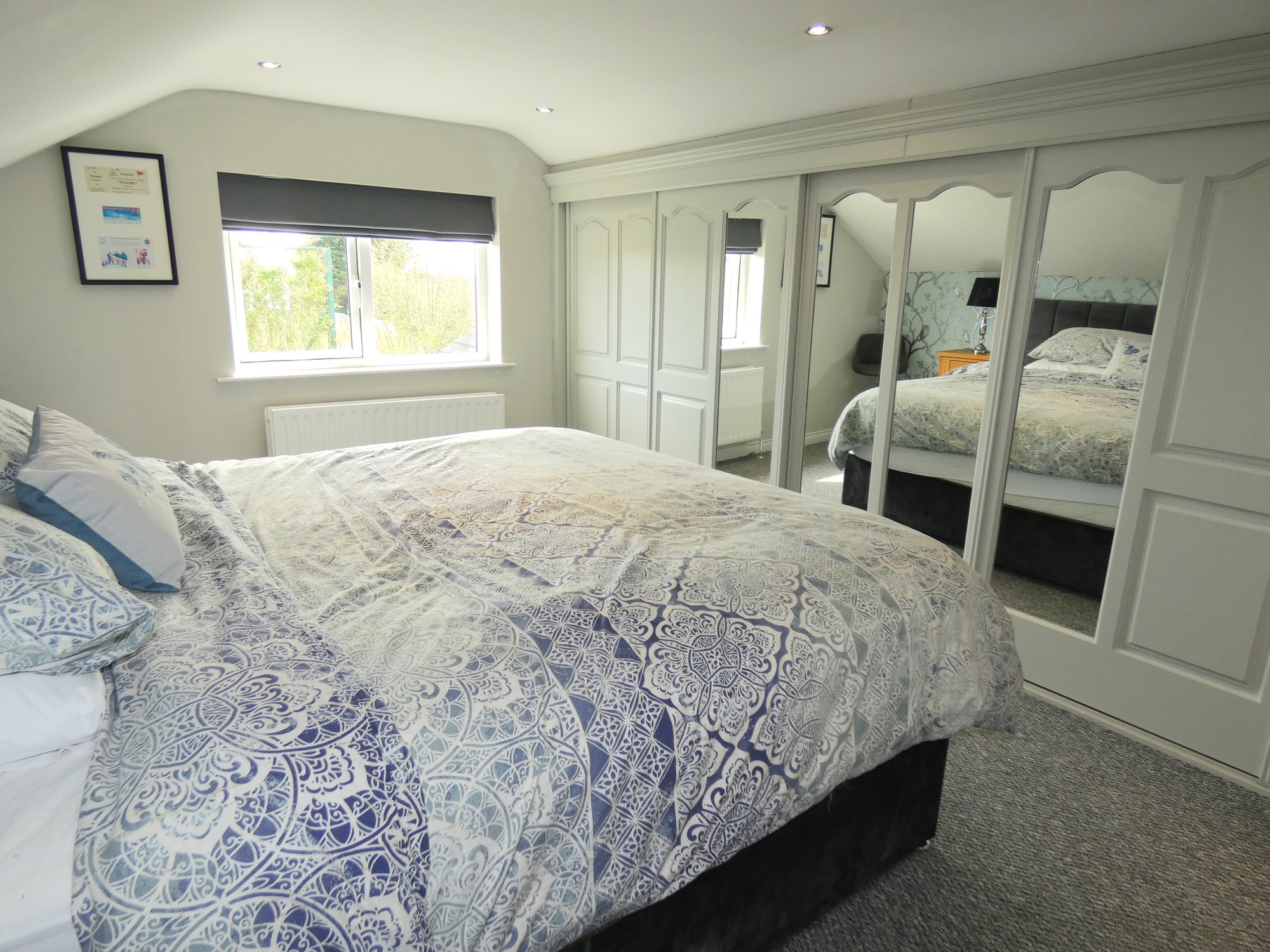 With a large gable window overlooking the rear and the open playing field, fitted and partially mirrored sliderobes and recessed ceiling spotlights.