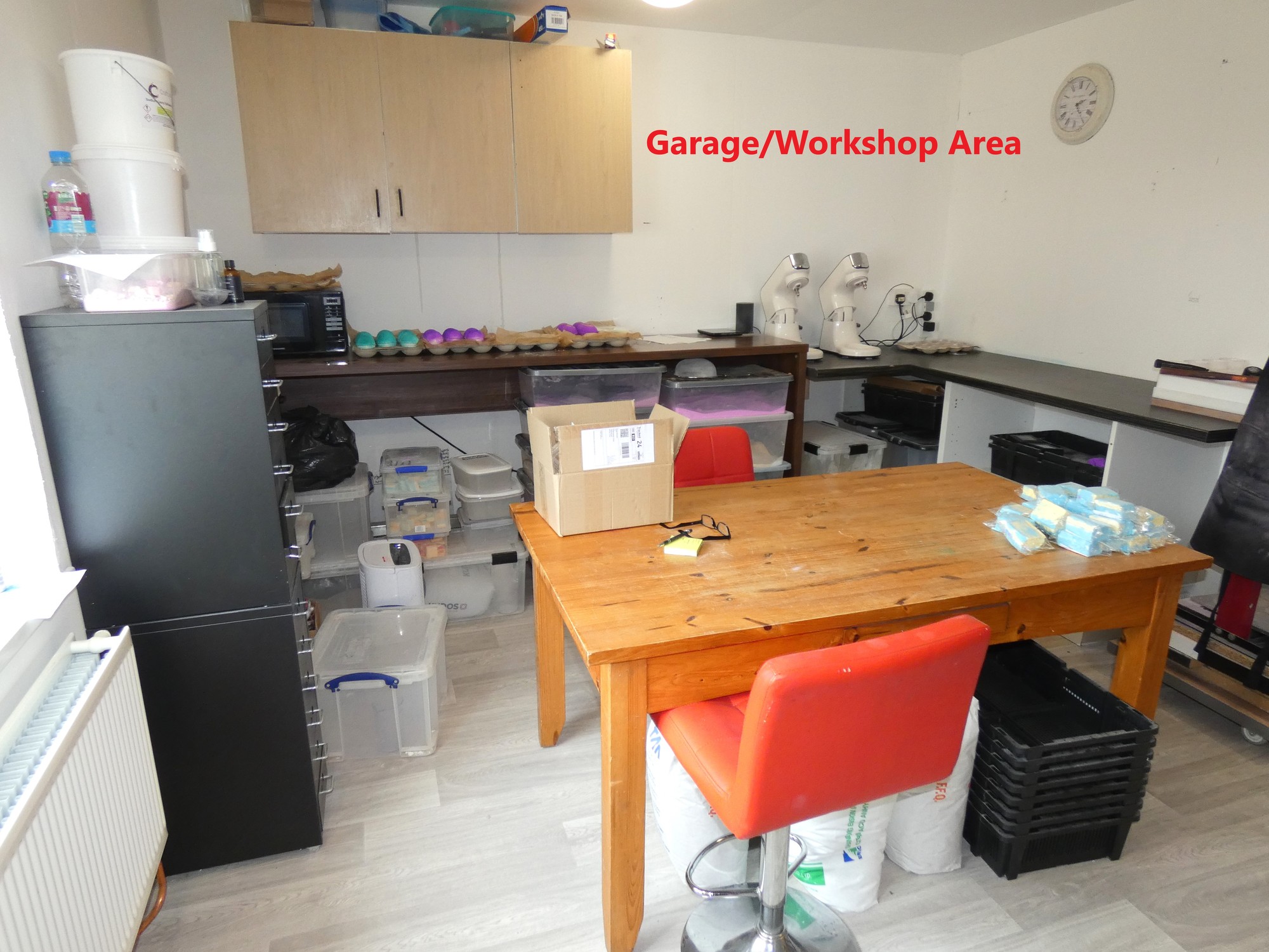 Presently sub divided including an insulated workshop/teenager den - with a radiator and lights; roller vehicular access door to the front storage area (remote control operation), light, power points, floored attic storage area and a upvc pedestrian door.