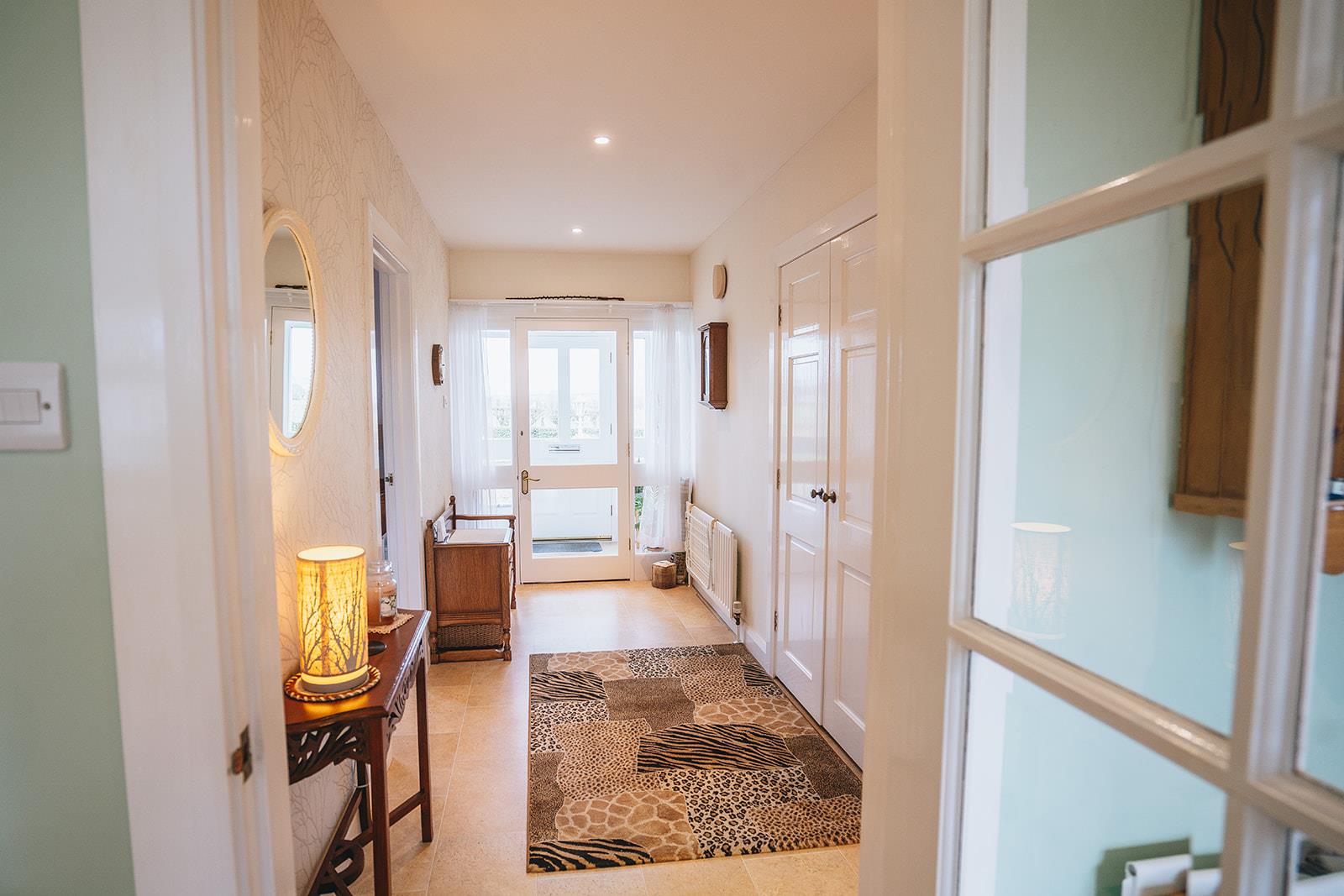 A double glazed hardwood entrance door with side lights leads to the entrance porch with Karndean flooring.