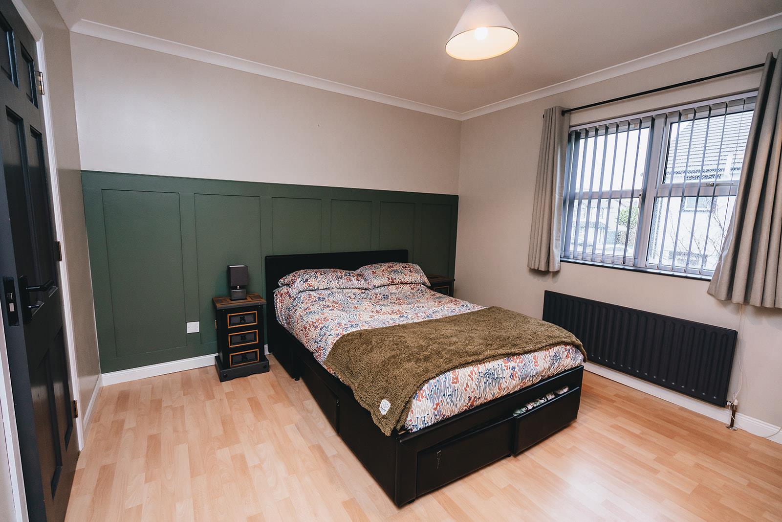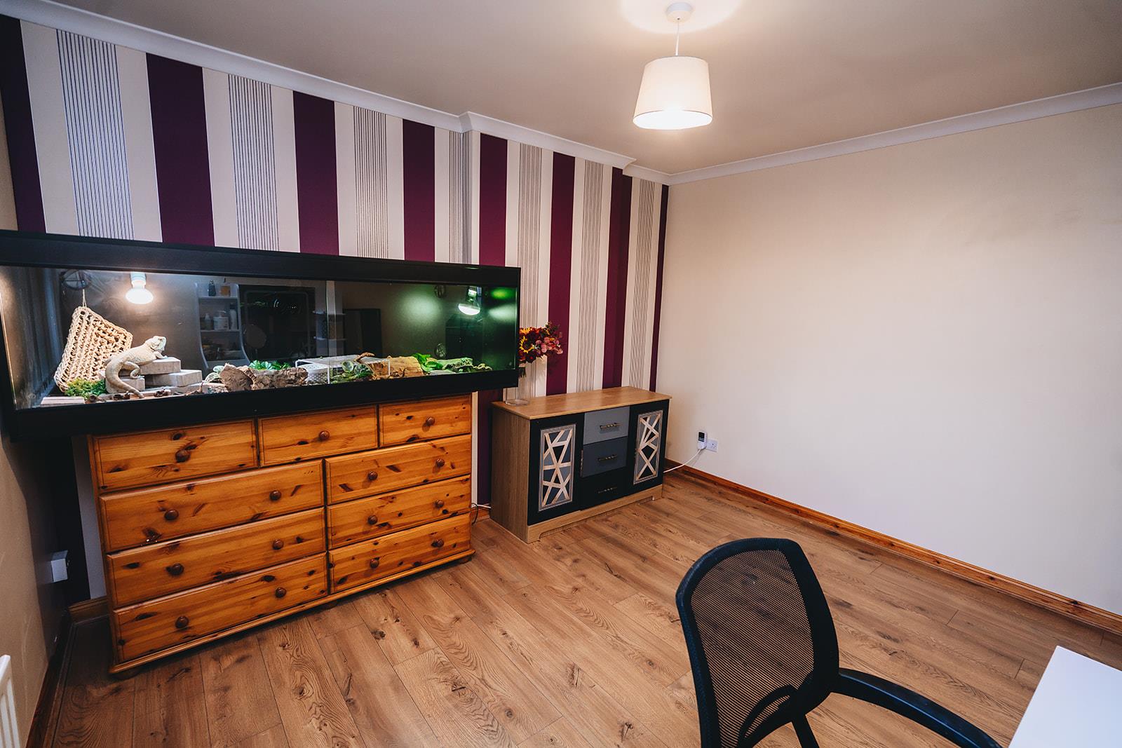 Another double room with wood laminate flooring and coving.