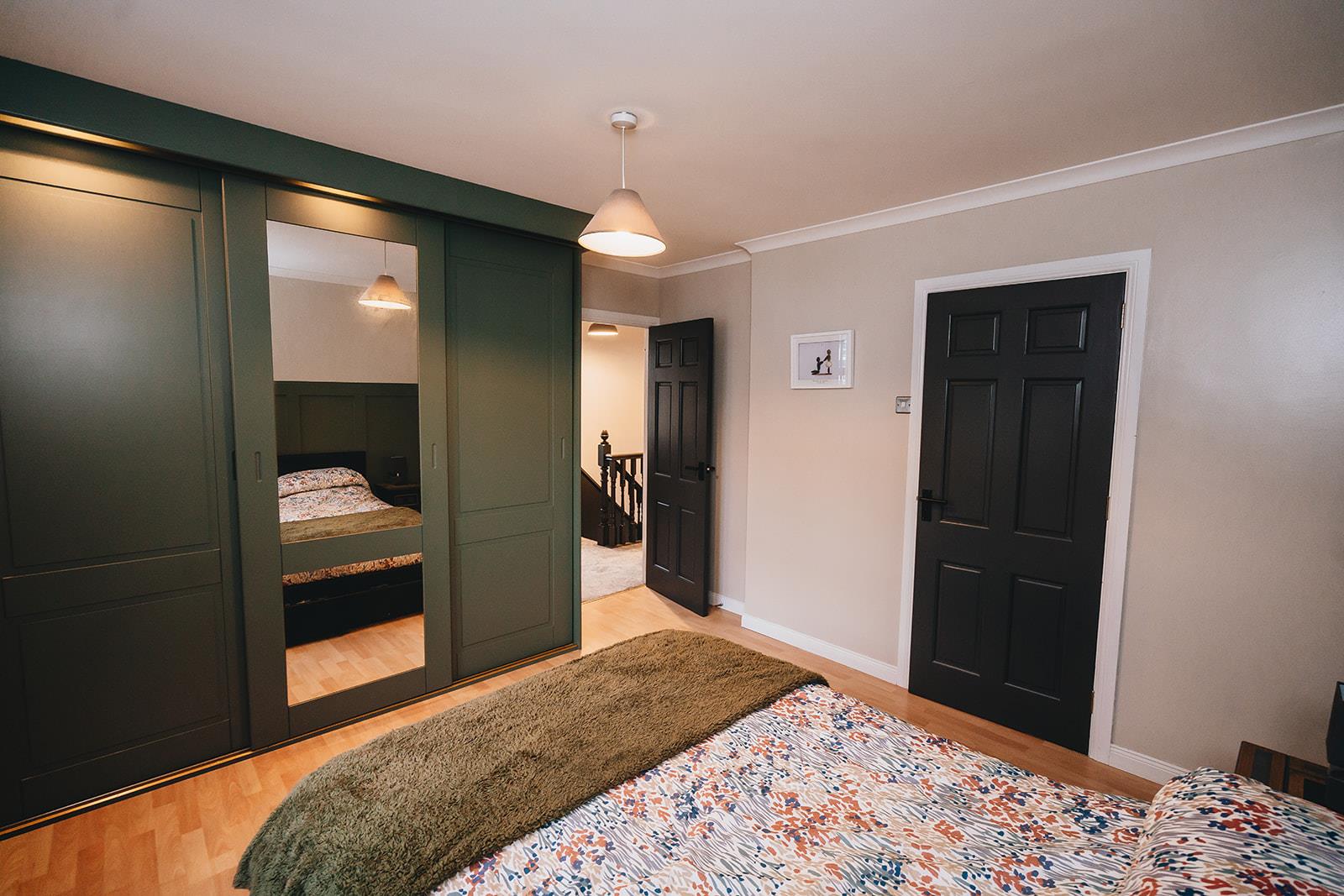 A single room with built-in storage cupboard above the stairs.