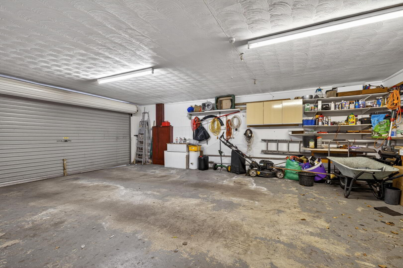 With electric roller door, sink with splashback tiling, storage cupboard, power and light