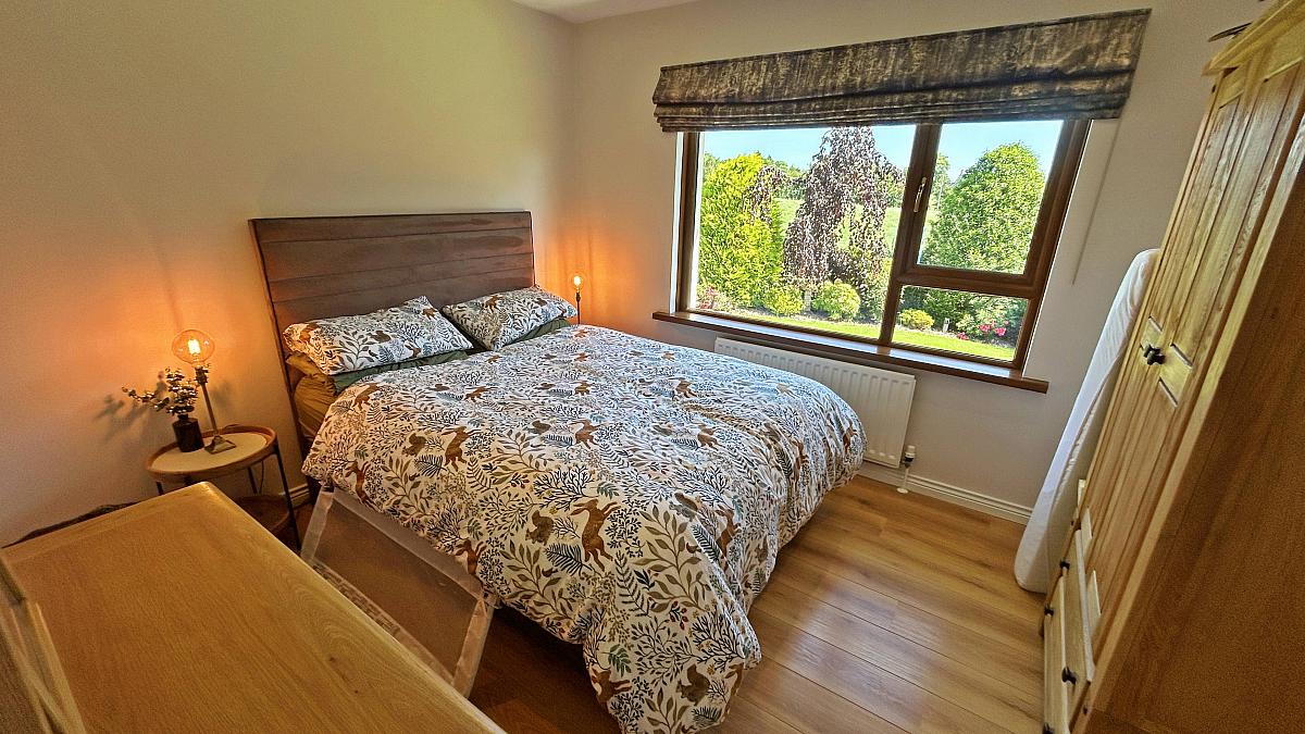 Double room to side with laminate wood floor and views over garden.