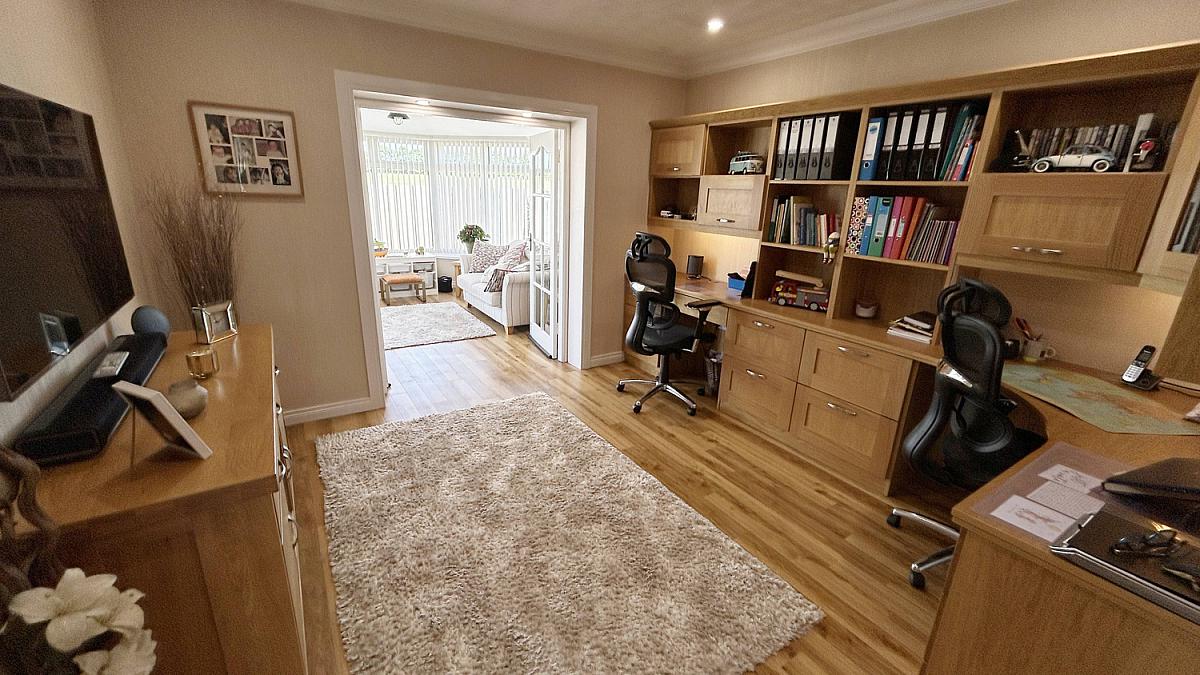 Amtico floor with fitted desk and drawers. Light well and television point. Opens to ...