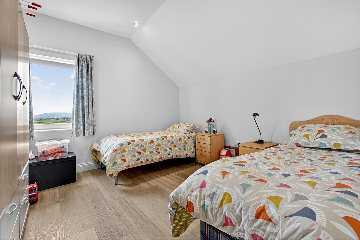Karndean floor and television point. Large window with stunning views of Knocklayd.