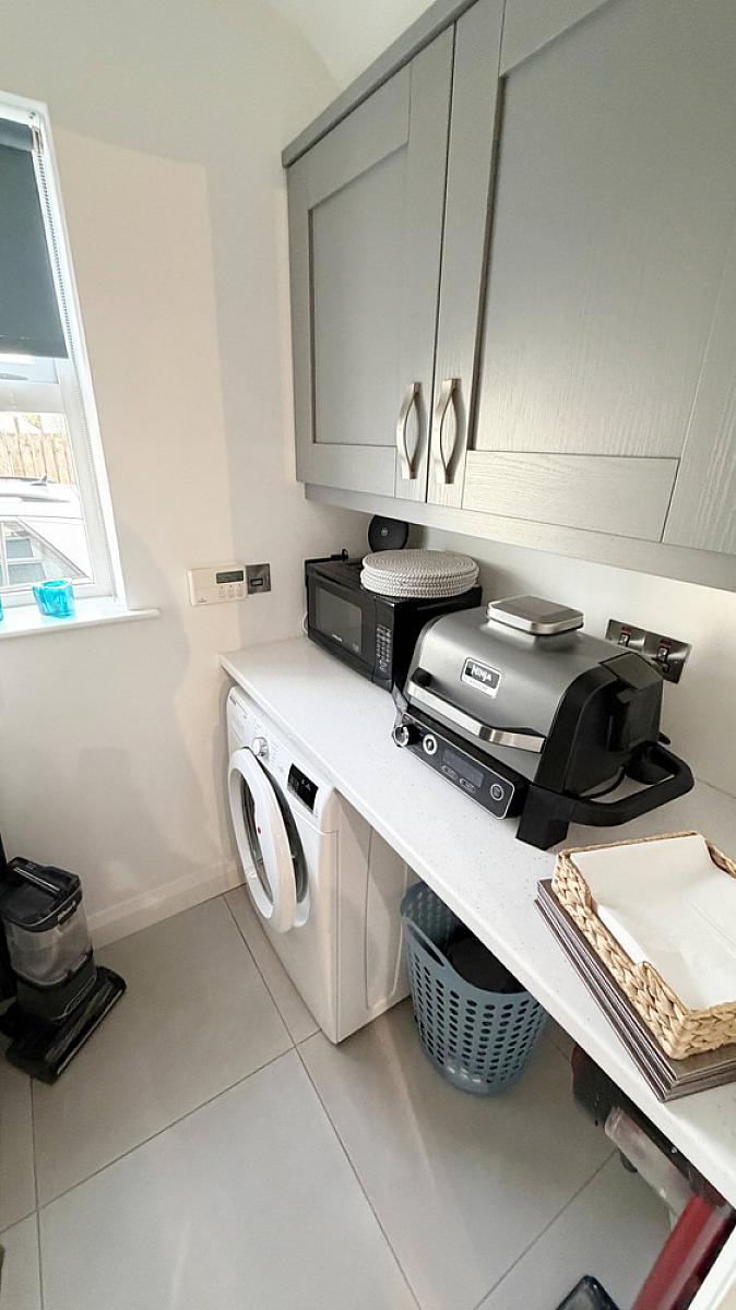 Tiled floor, storage for tumble dryer, space for washing machine