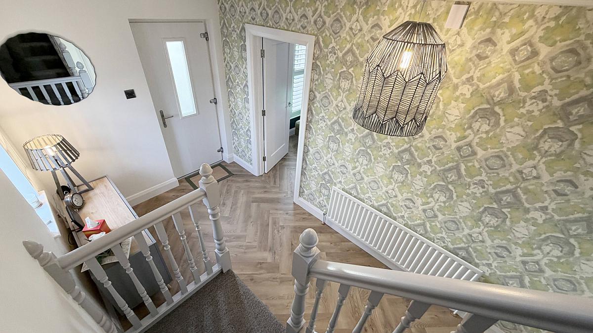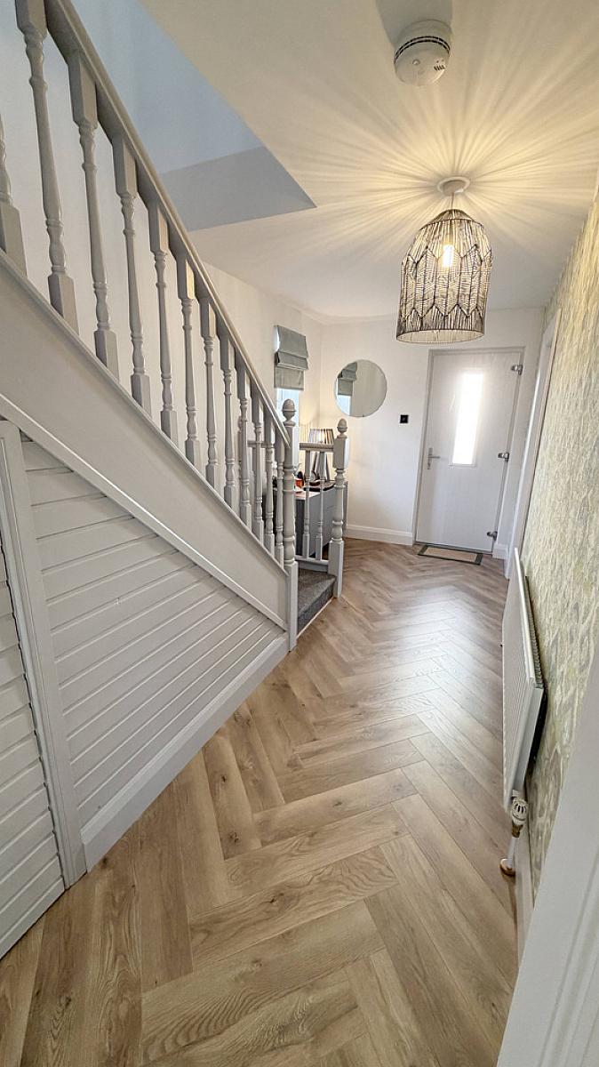 Composite front door, LVT flooring, telephone point, under stairs storage cupboard.