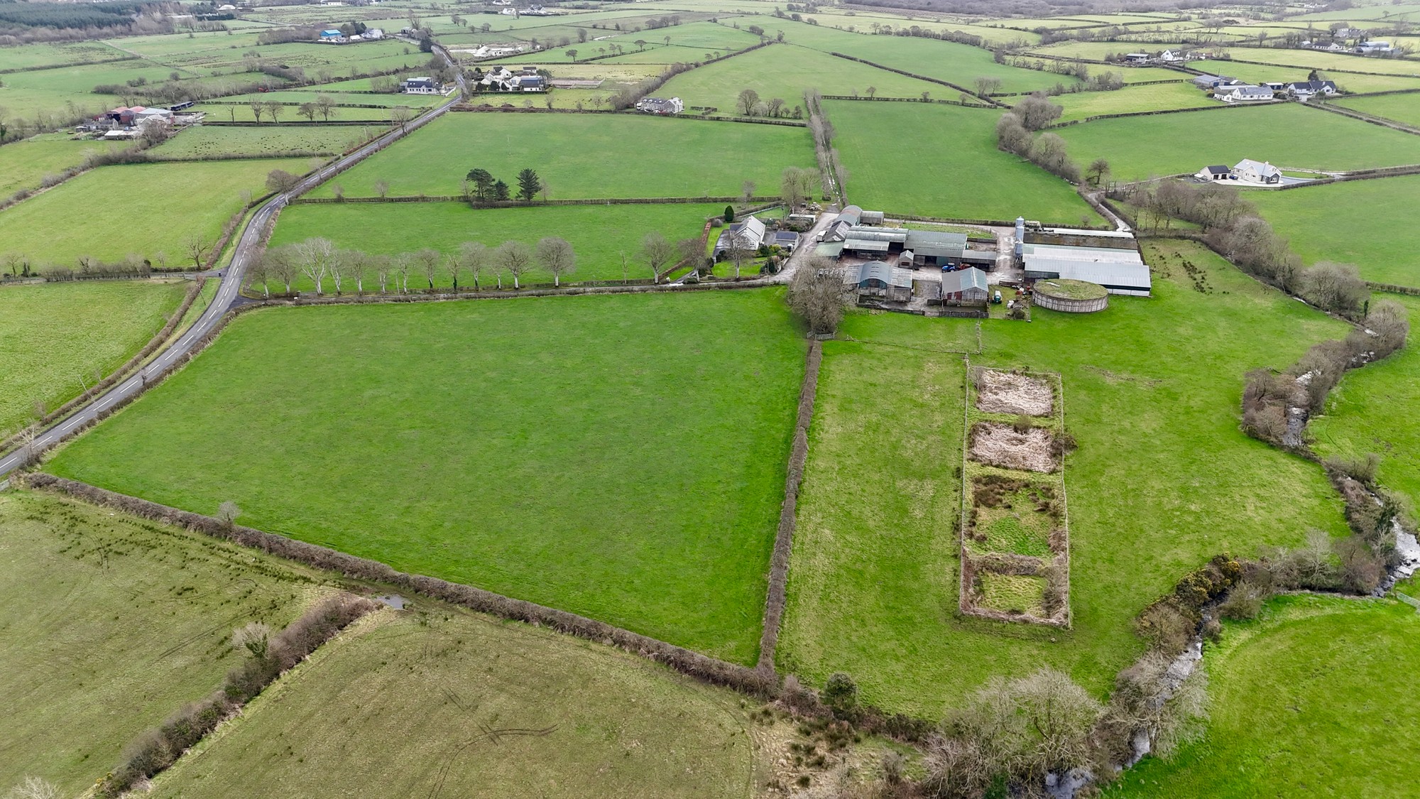 The farmyard offers an extensive range of modern livestock accommodation for beef cattle and a former pig fattening enterprise. The farmland is all held in a compact block extending to c. 68.37 acres with good frontage to the Burnquarter, Bravallen & Mullan Roads.