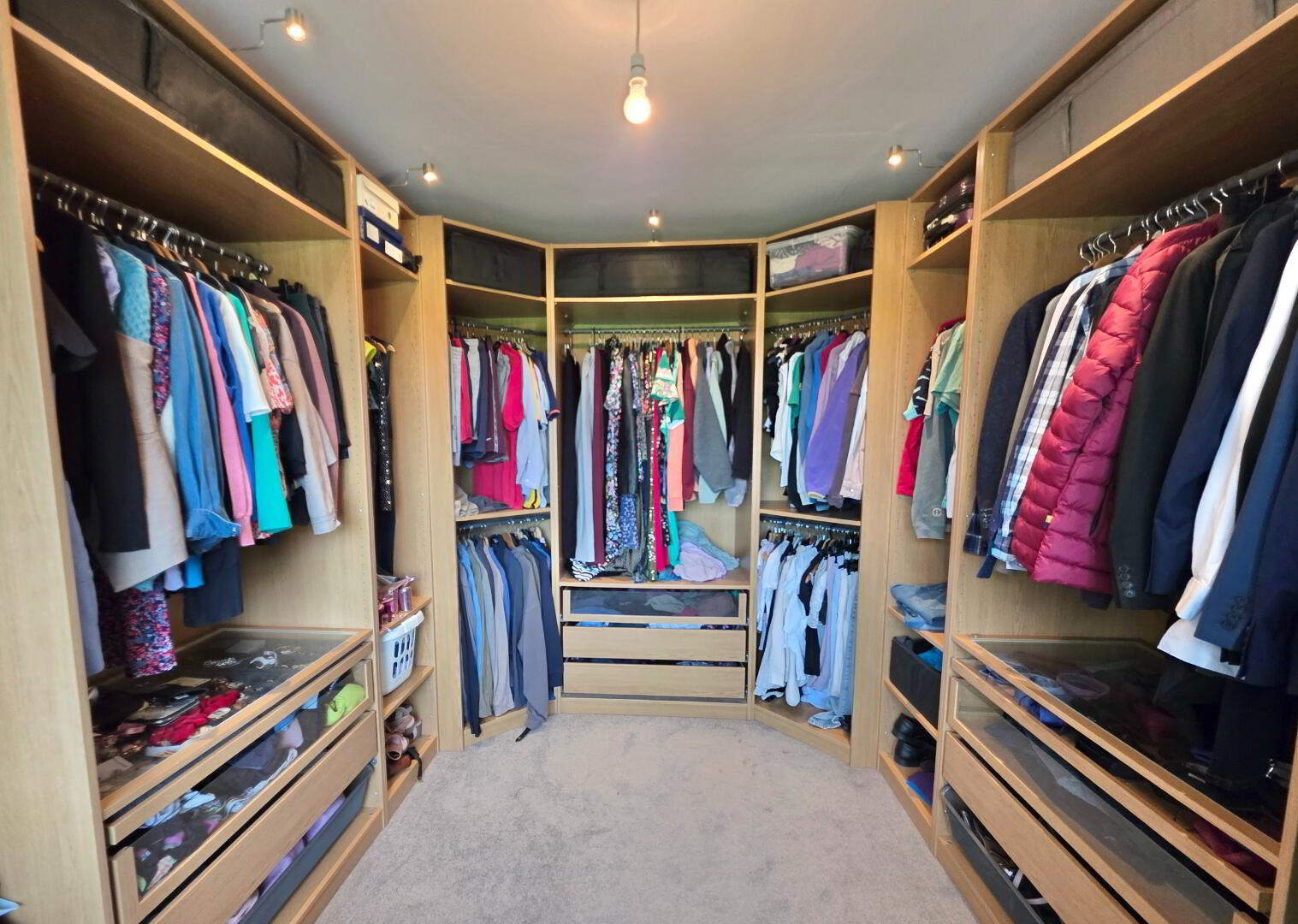 12'11 x 10'4 (Presently used a dress room complete with fitted units comprising ample wardrobe space, shelving units, over head storage, tie drawer, jewellery drawer).