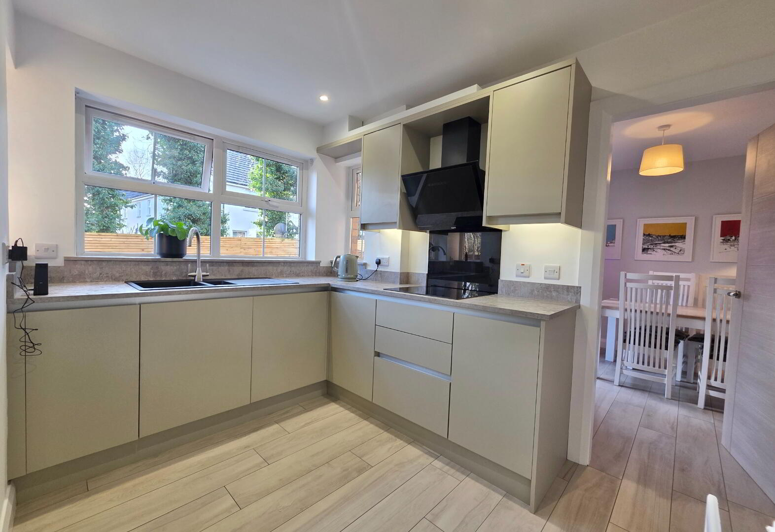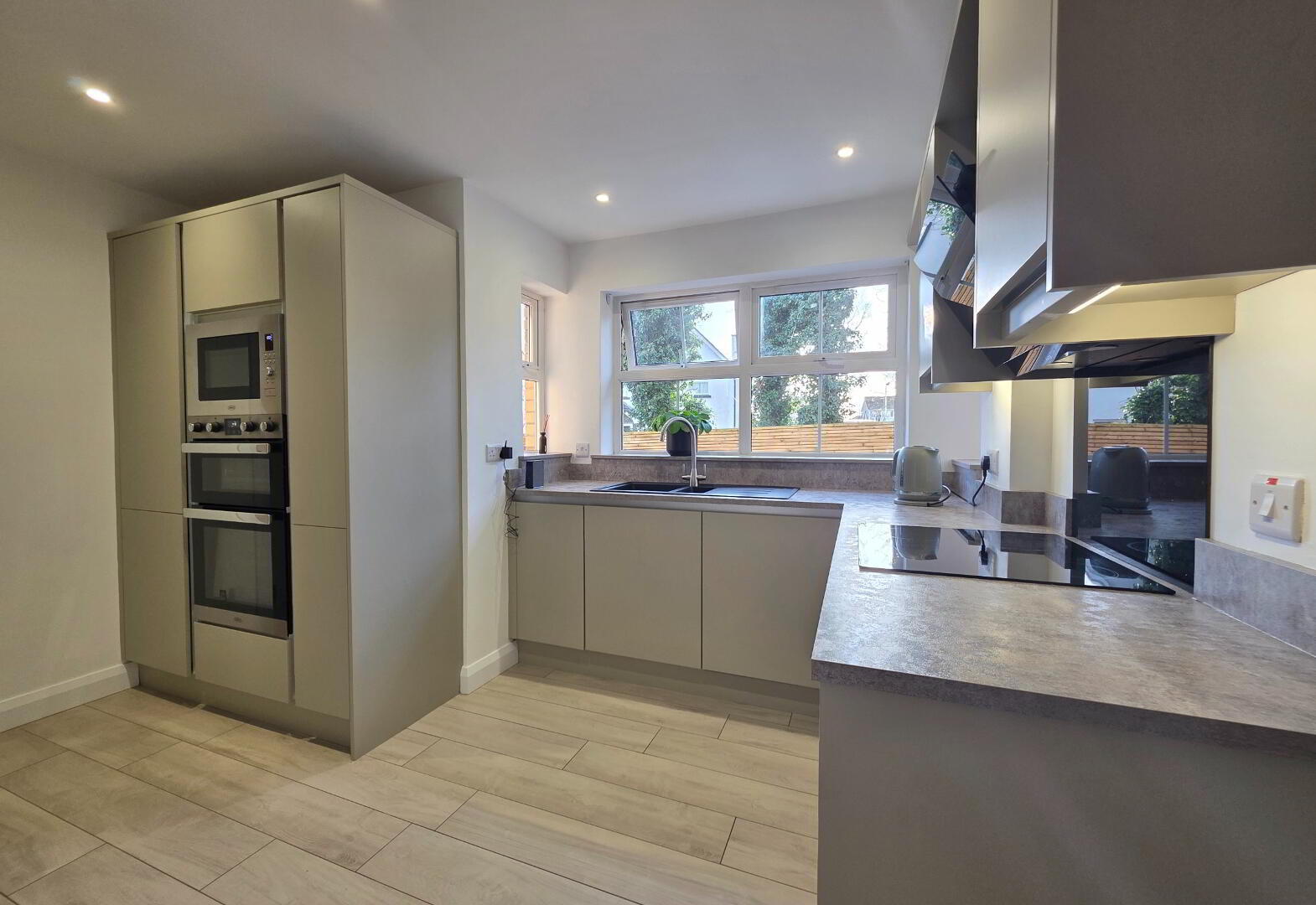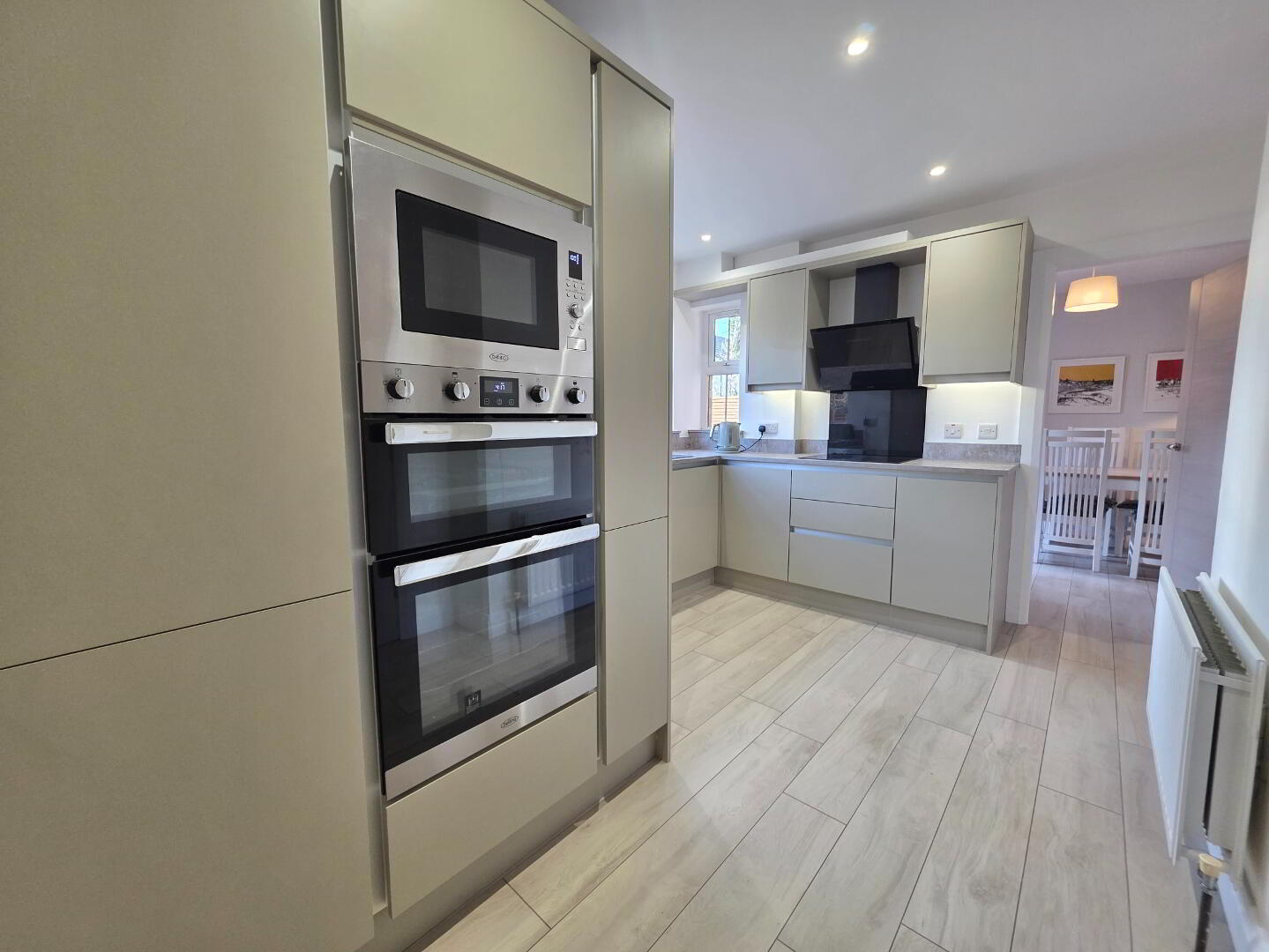 12'7 x 9'2 (Average measurement) With a most attractive ash grey fully fitted kitchen having a vast array of eye and low level units incorporating a good 'Hotpoint' ceramic hob, modern touch 'Esto' extractor fan, 'Belling' stainless steel microwave oven, 'Belling' double oven/grill, 'Smeg' integrated dishwasher, pull-out larder unit with stainless steel dispensary shelving, broom cupboard, one and a half bowl sink unit, saucepan drawer, tiled floor, recessed lights.