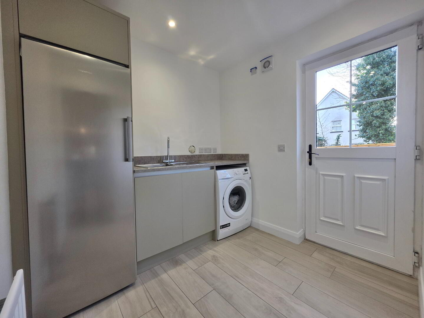 7'4 x 7'1 With low level units including 'Smeg' single drainer stainless steel sink unit, left plumbed for automatic washing machine, space for fridge/freezer, tiled floor.