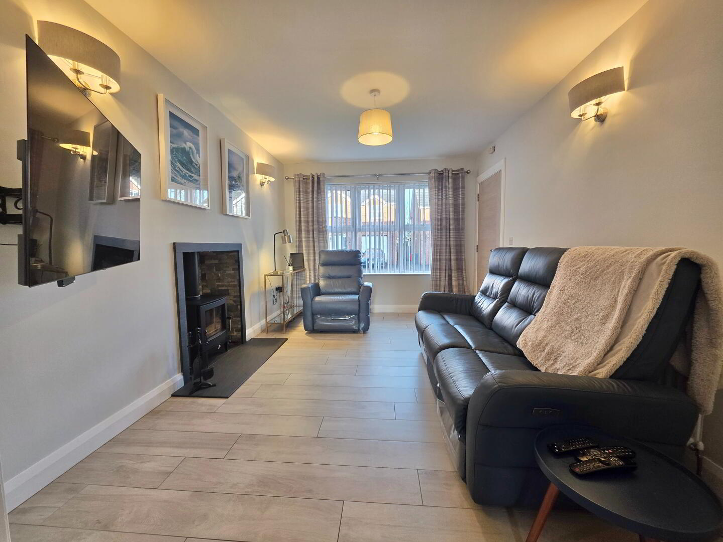 13'6 x 9'10 With feature 'Inglenook' styled fireplace having black multi-fuel stove set on a black slate hearth and natural stone inset, high level television point, tiled floor, wired for wall lights.