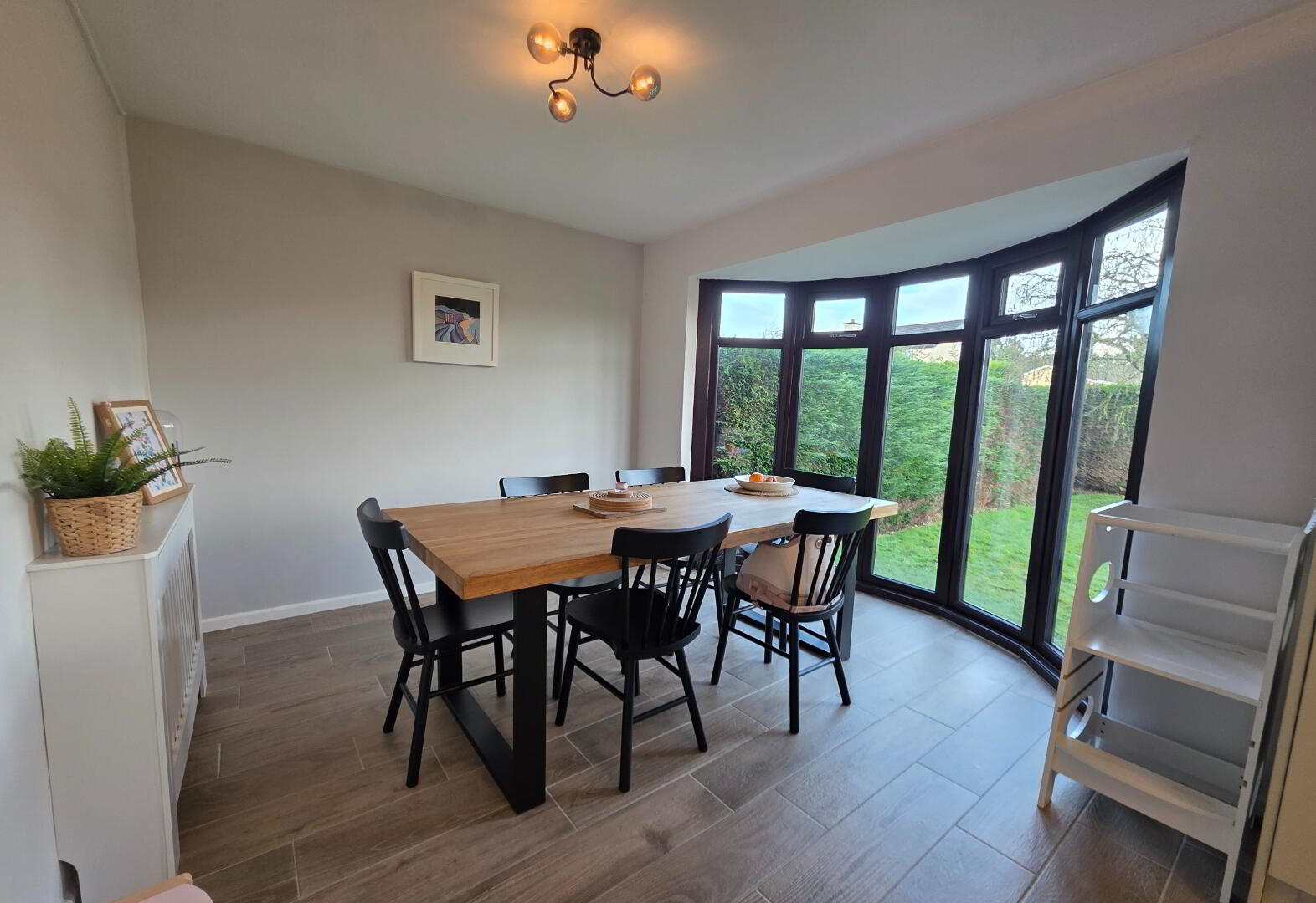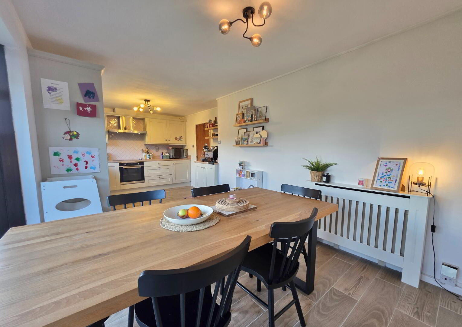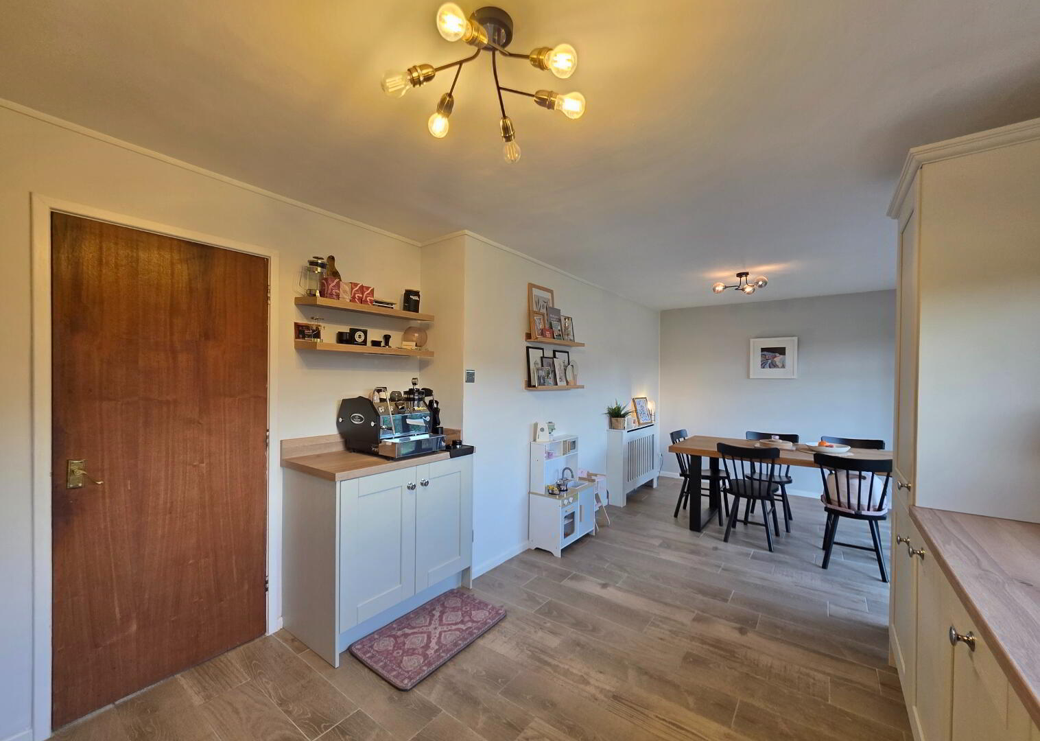 With wooden effect tiled floor.