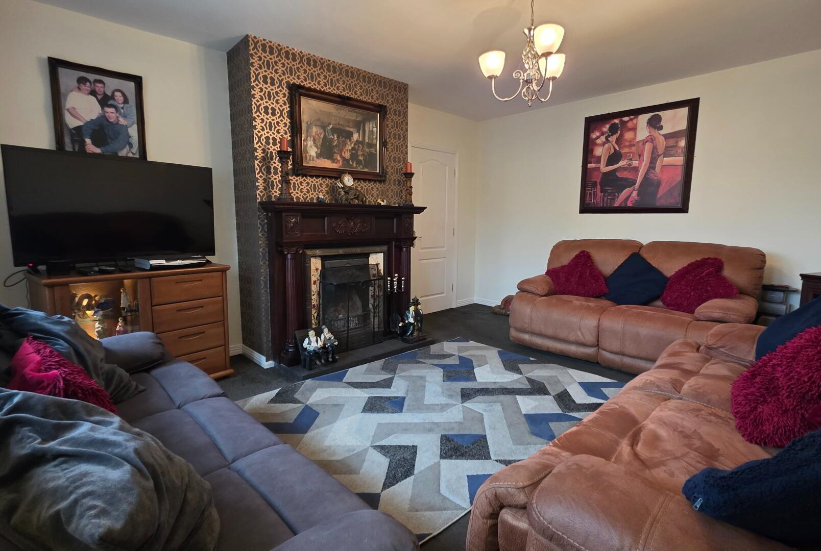 16'4 x 12'9 With feature cast iron inset having mahogany surround set on a black tiled hearth, television point.