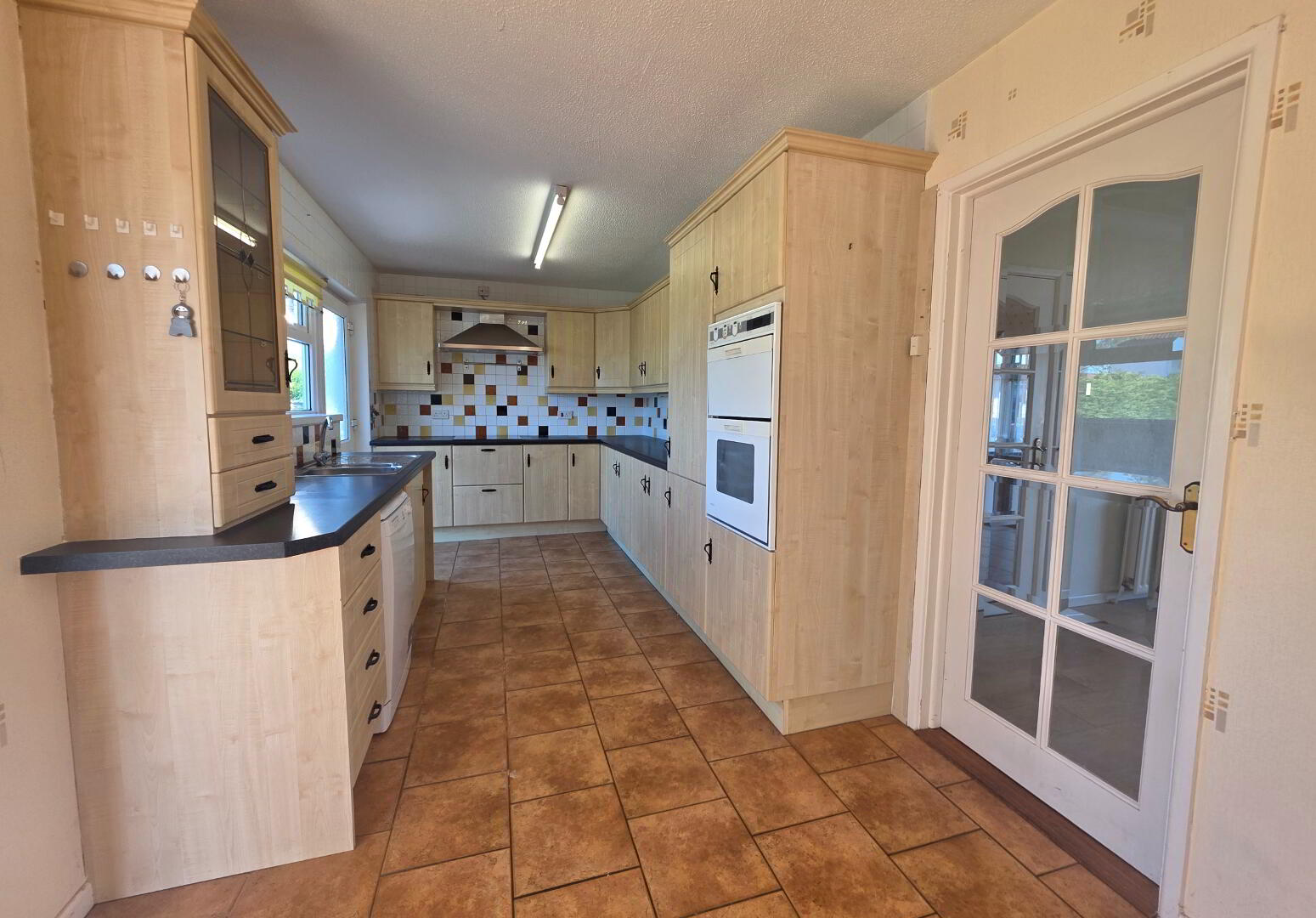 22'6 x 8'3 With an extensive range of fully fitted eye and low level units comprising a touch ceramic hob, 'Canterbury' electric oven, stainless steel extractor fan, integrated fridge, left plumbed for automatic dishwasher and washing machine, glass display cabinet, tiled between eye and low level units, tiled floor.