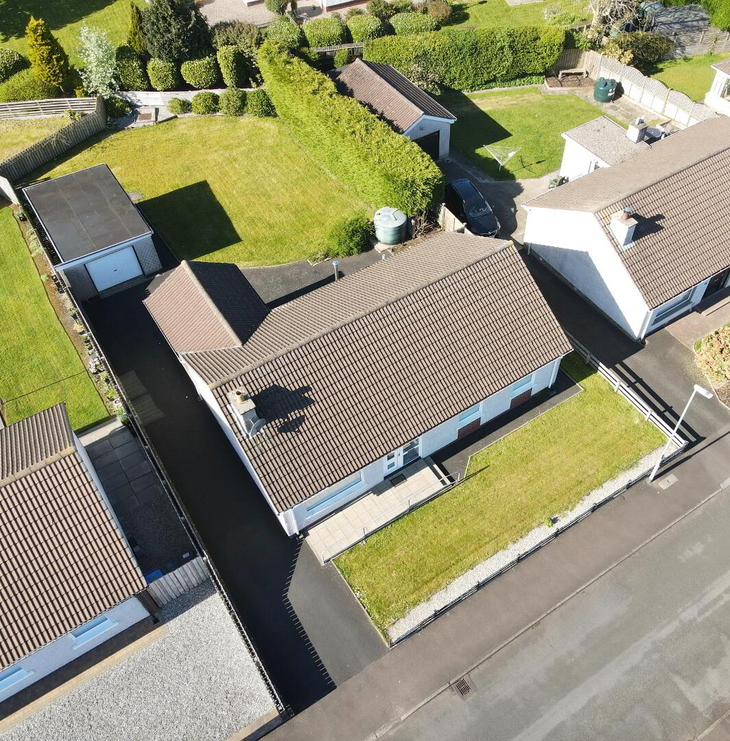 Detached Garage 20'0 x 12'0 with automatic roller door, light and power points. Garden to rear laid in lawn enclosed by fence and mature evergreens hedging. Garden to front laid in lawn enclosed by ranch styled fence and bordered with a variety of tree's and bushes. Tarmac drive and parking area to front and rear. Outside watertap.