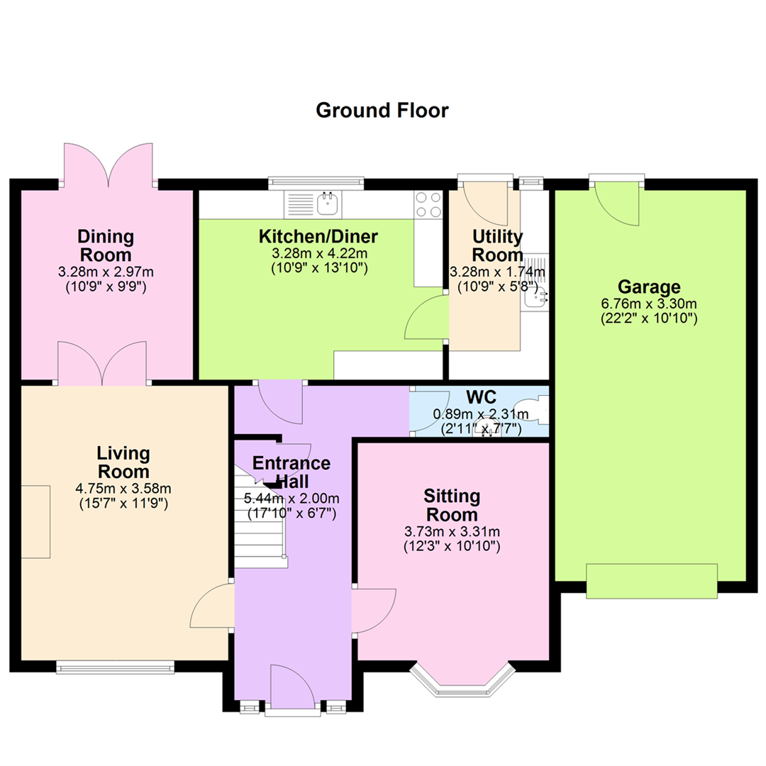 Sitting Room 12'3" X 10'10" (3.73m X 3.31m)