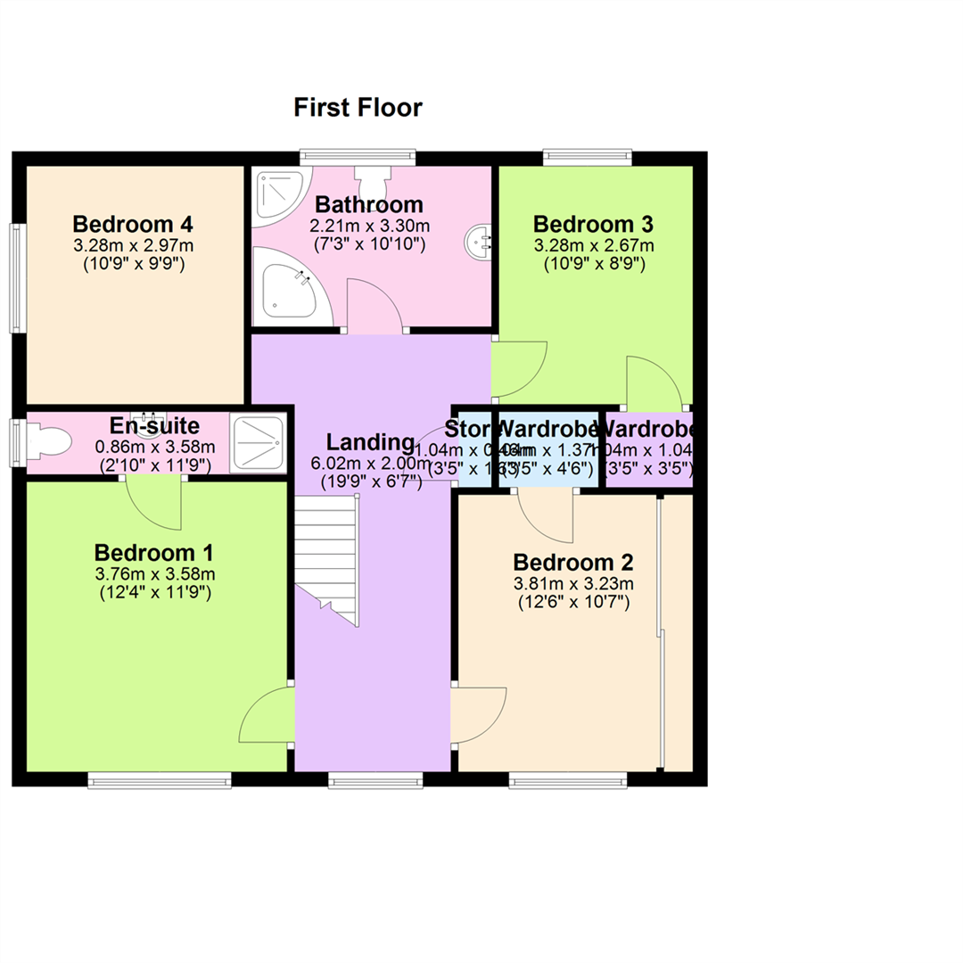 Bedroom 1 12'4" X 11'9" (3.76m X 3.58m)