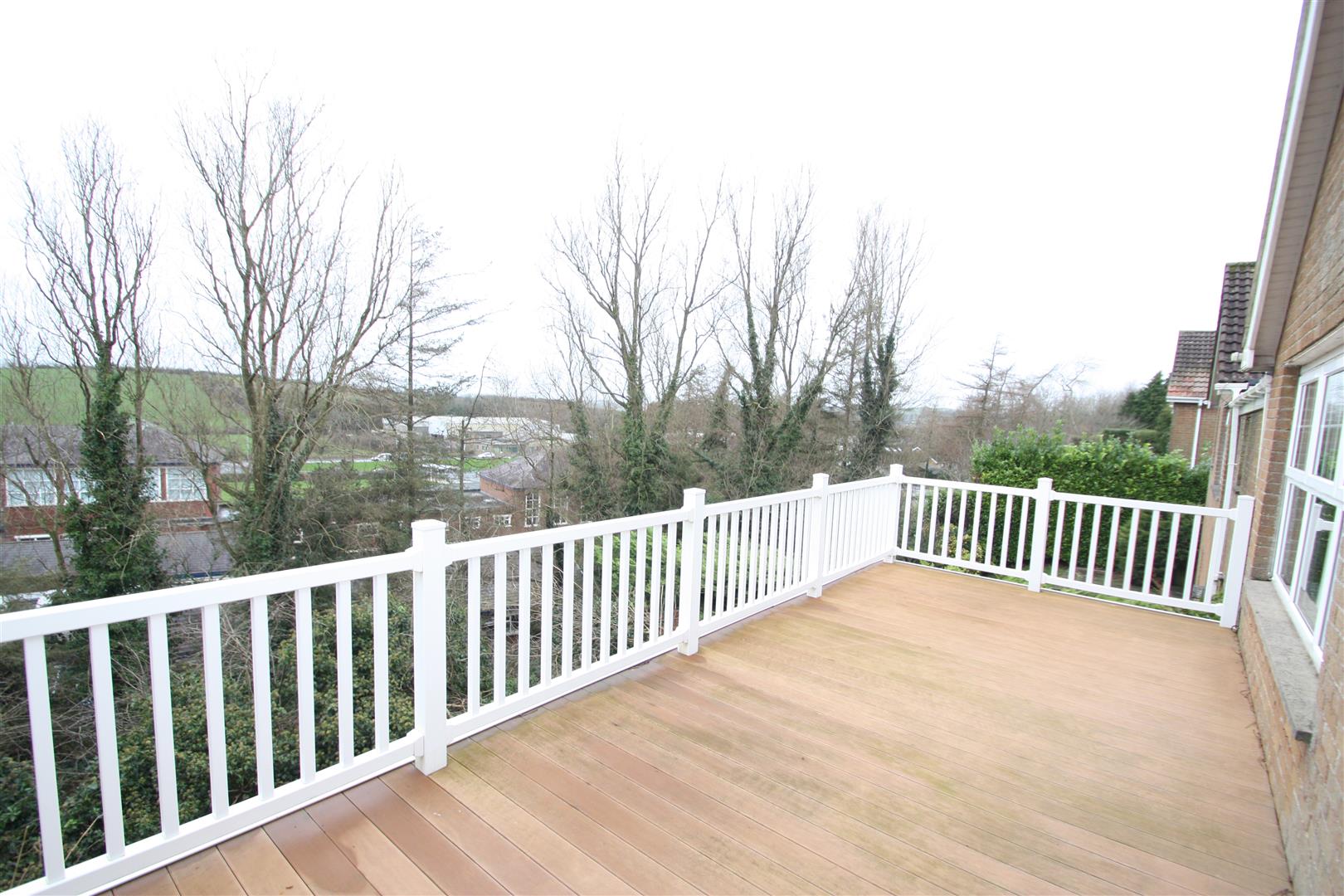 To the front is a tarmac driveway with ample parking and gardens laid in artificial grass. Flower beds with mature plantings.