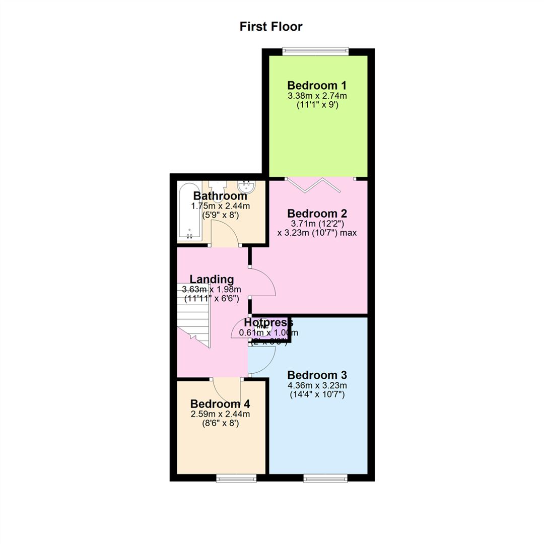 Bedroom 1 11'1" X 9'0" (3.38m X 2.74m)