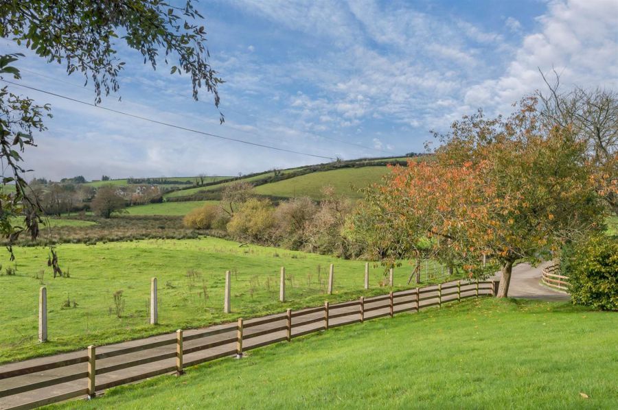 Gardens in lawn to front, side and rear, patio areas ideal for barbequing and outdoor entertaining. Excellent degree of privacy with mature trees, a running stream to the left side of the property and shrubs. Tarmac driveway and ample parking.
