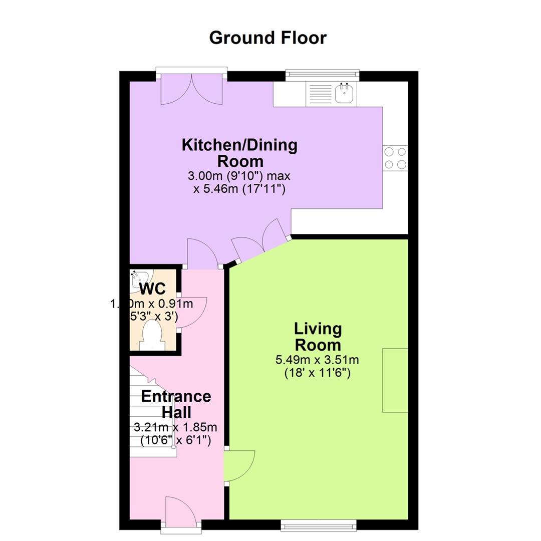 Living Room 18'0" X 11'6" (5.49m X 3.51m)