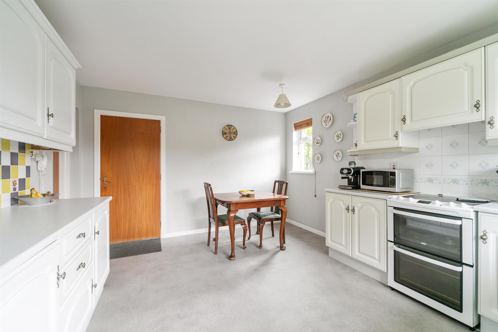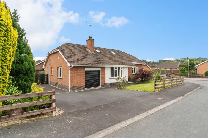Externally the property is set on a large site with a tarmac driveway and lawned garden to the front. To the rear there are lawns, plantings and a paved patio area. Additional benefits include a garage, oil fired central heating, double glazing, PVC fascia and soffits.