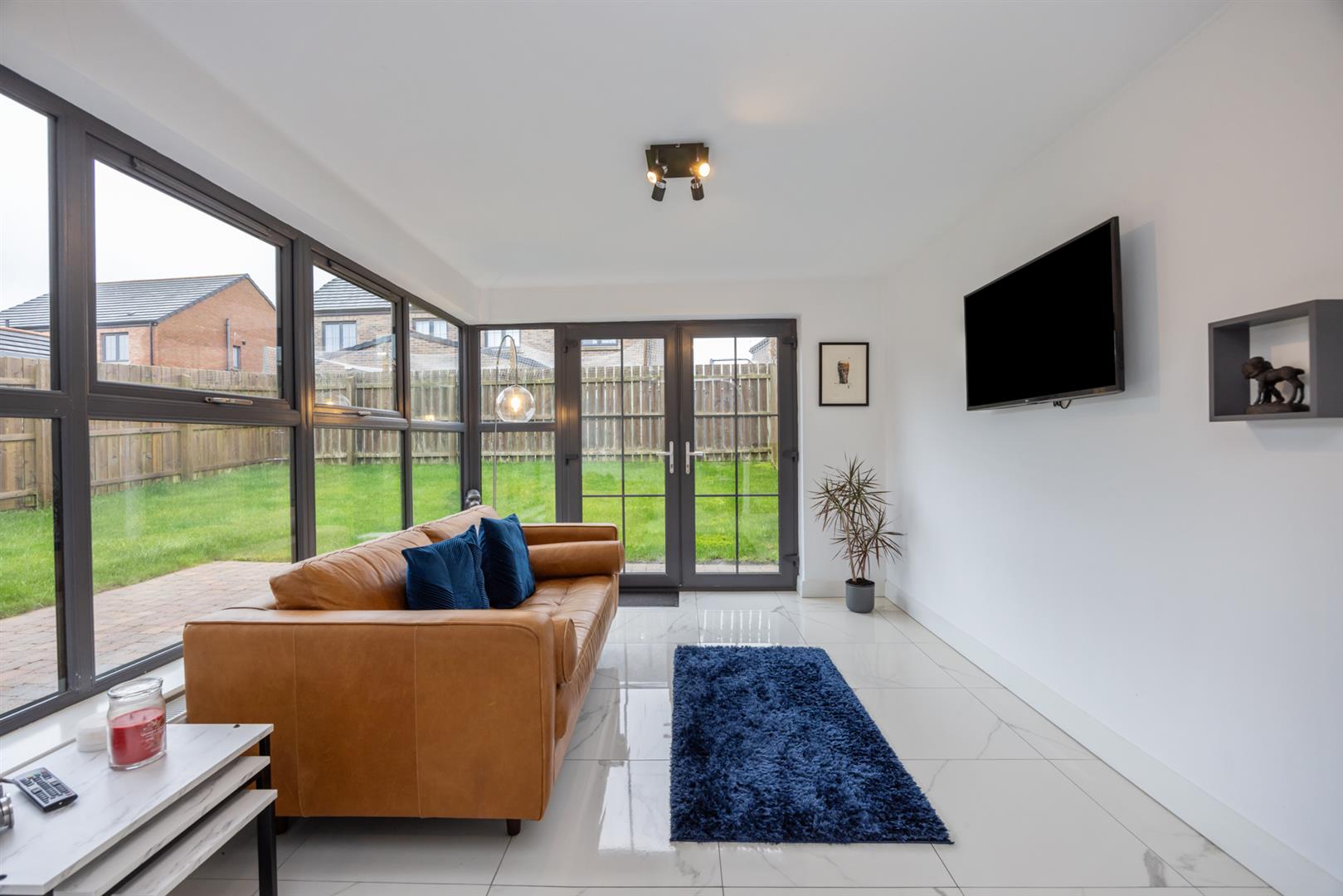 Tiled floor and double doors to rear.
