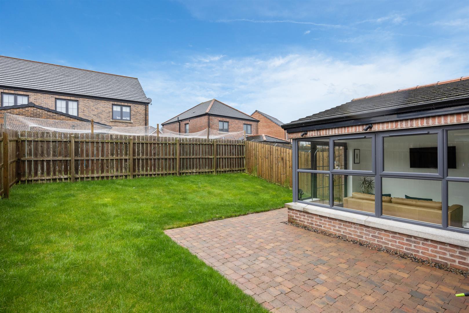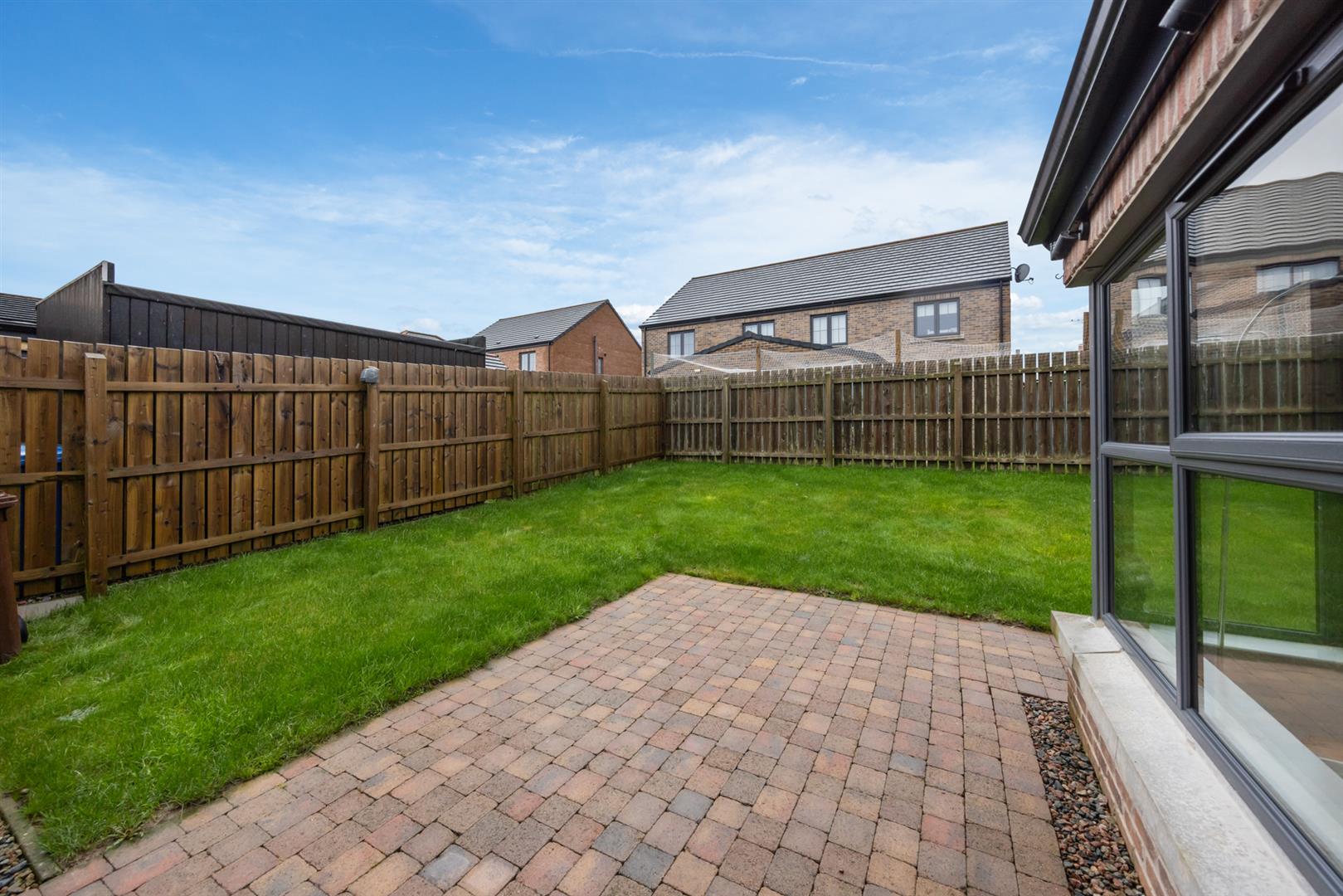 Garden to front laid to lawn, paviour brick path, gravel driveway. Good size garden to rear, laid to lawn, paviour brick patio area.