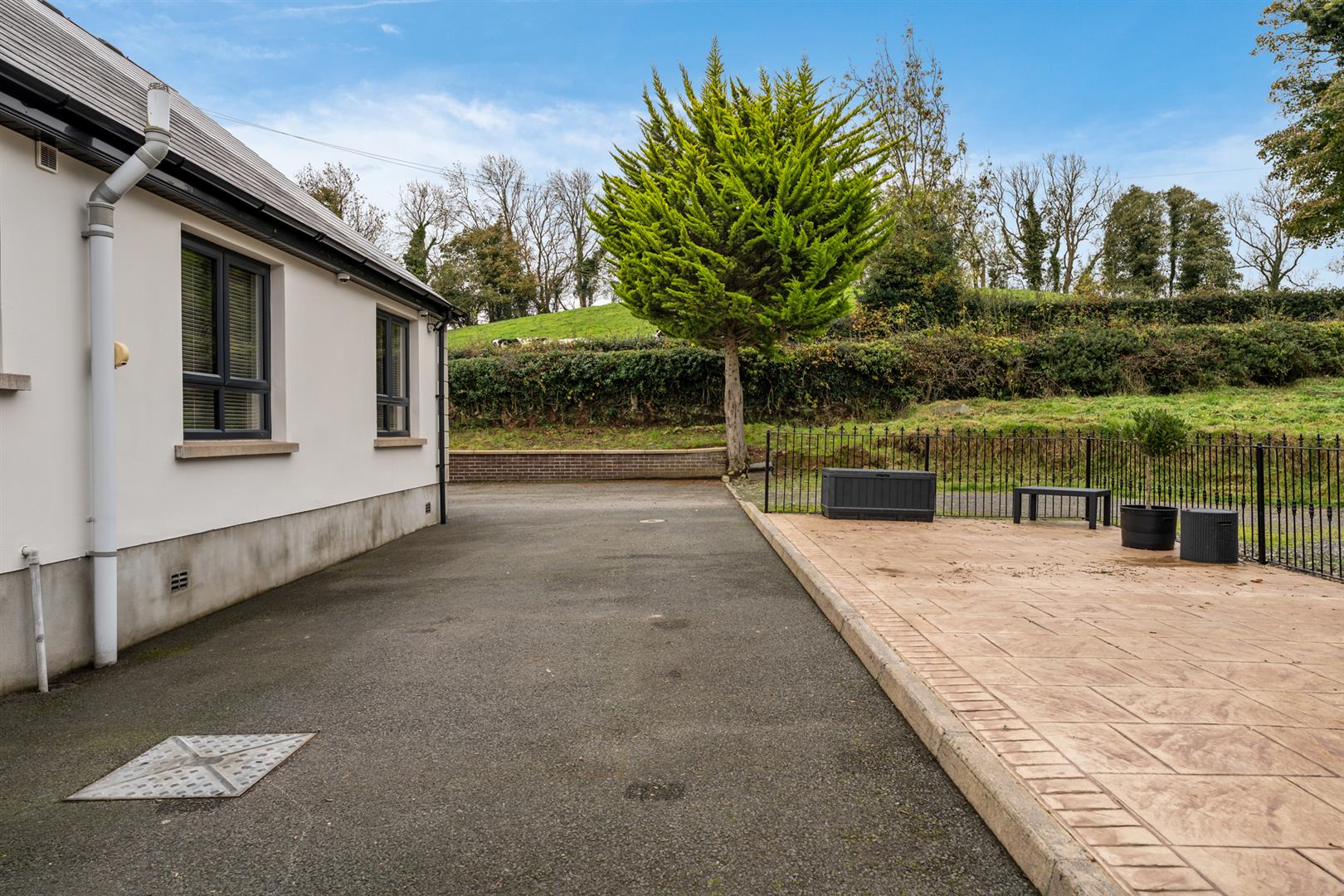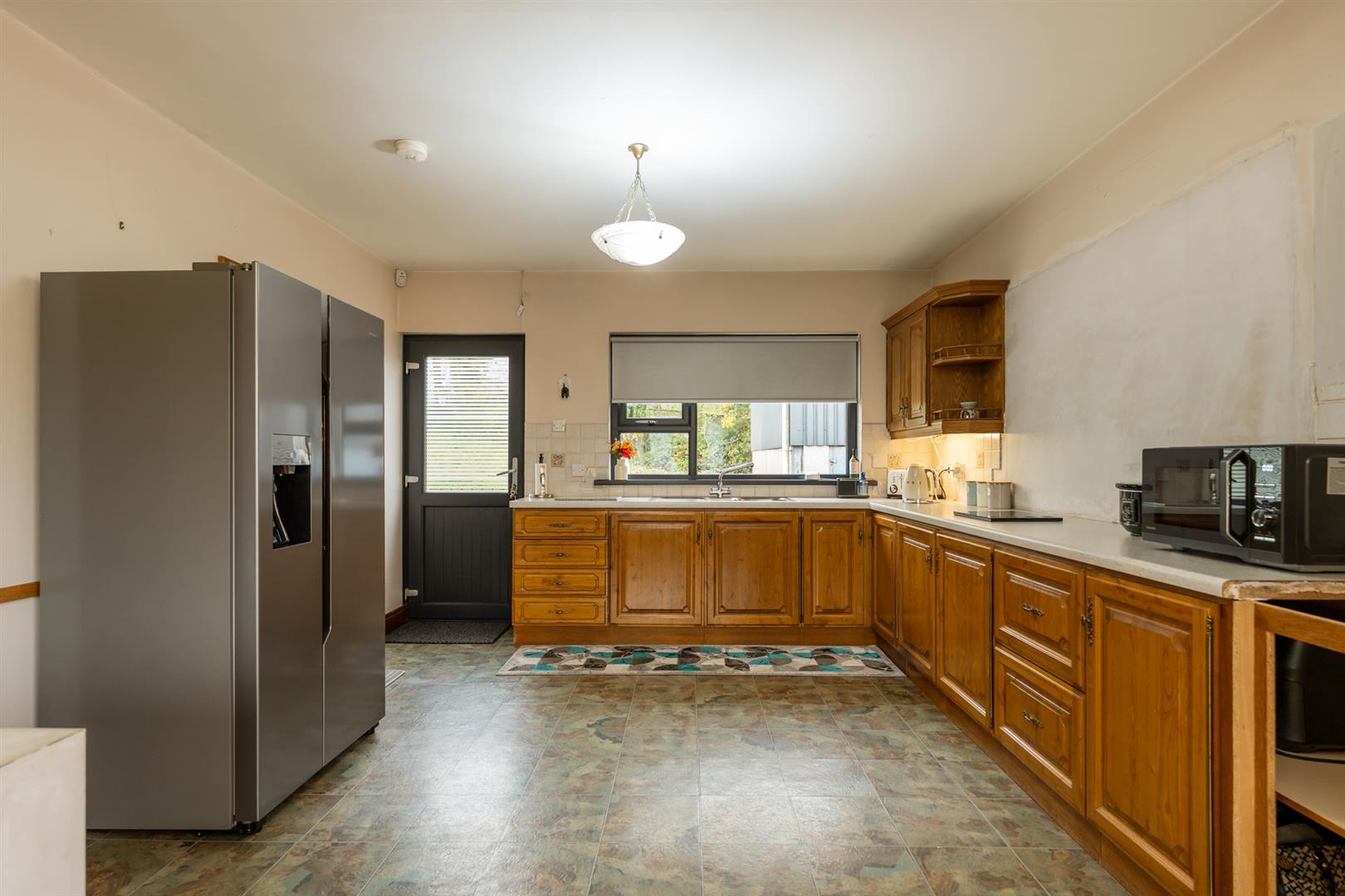 The property sits on a site of approximately one and a half acres and is approached through stoned pillars with gates to tarmaced driveway and ample space for parking. To the front there is a large area laid in lawn with access to workshop. To the rear there is a patio area ideal for outside entertaining and paddock area.