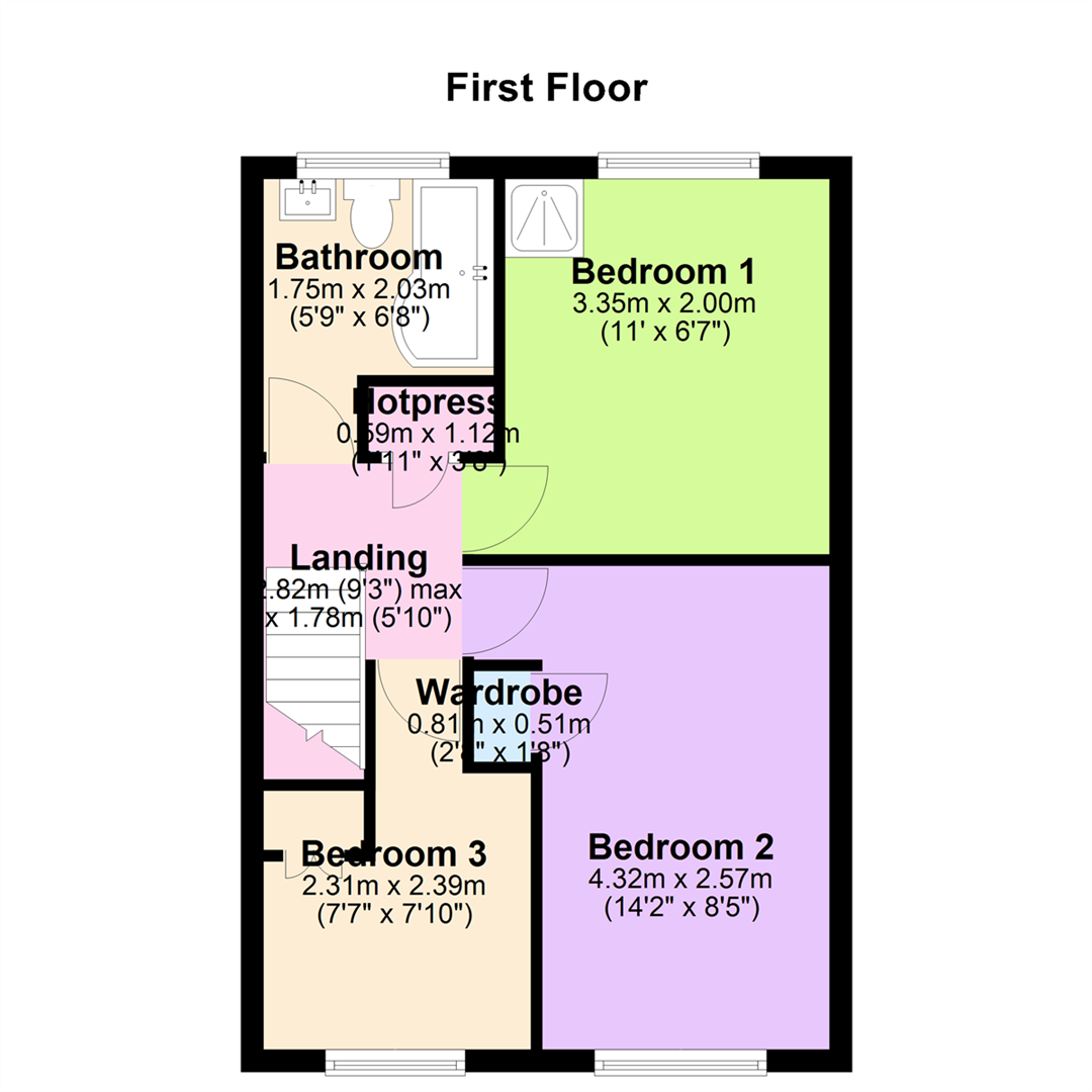 Landing 9'3" X 5'10" (2.82m X 1.78m)