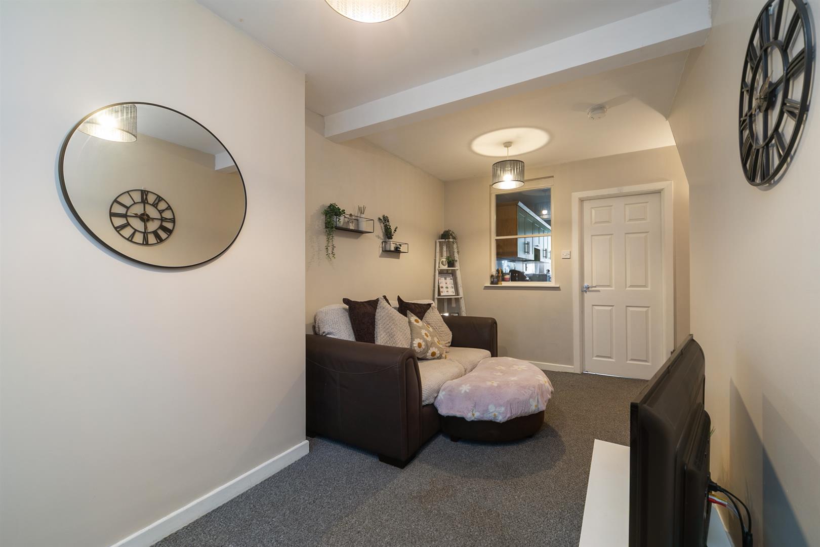 The property comprises a welcoming living room, a useful store room, and a fitted kitchen with dining area and access to the rear garden.