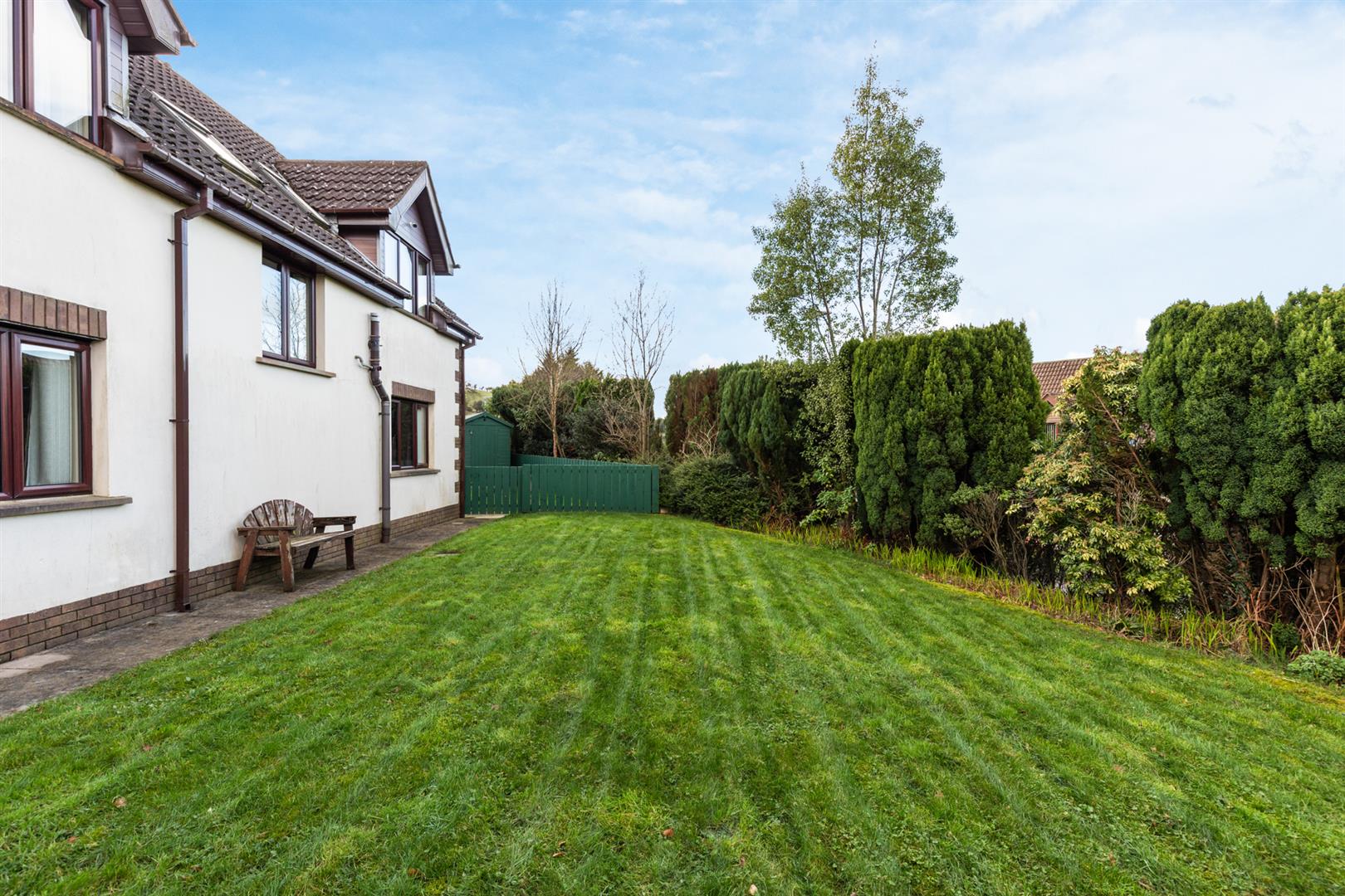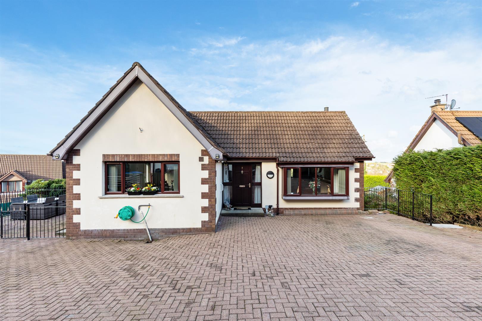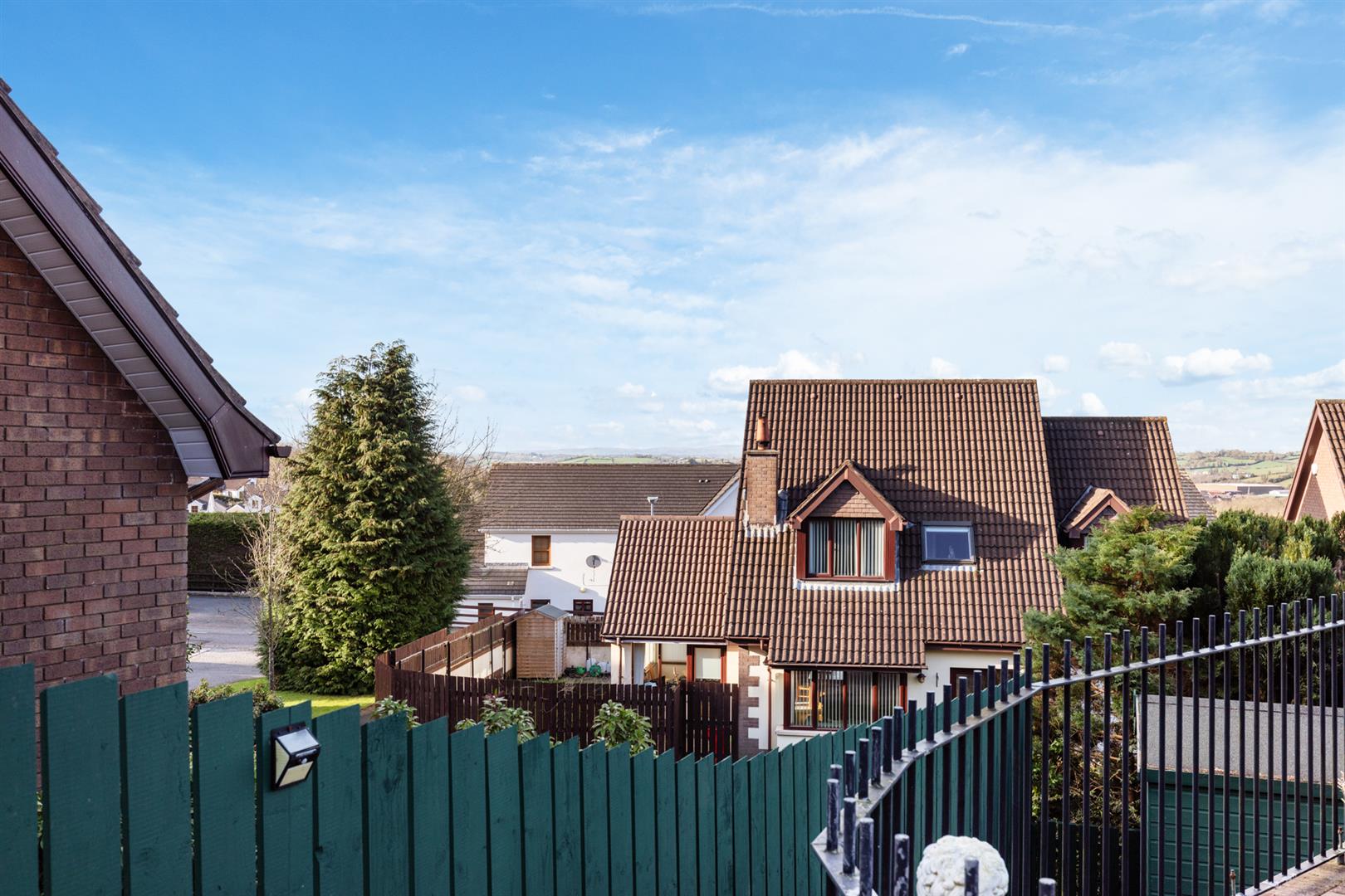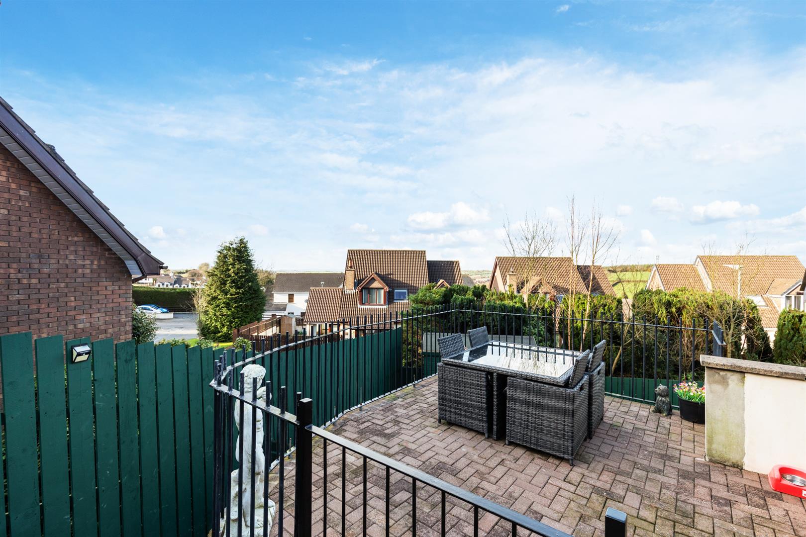 Externally, this home continues to impress. There is a garage and a large brick-paved driveway offering ample parking for multiple vehicles or a caravan. To the rear, a private patio area enjoys fantastic elevated views over Ballynahinch, creating the perfect setting for outdoor dining and relaxation. The enclosed garden is laid out in neat lawns, ideal for families and those seeking outdoor space.