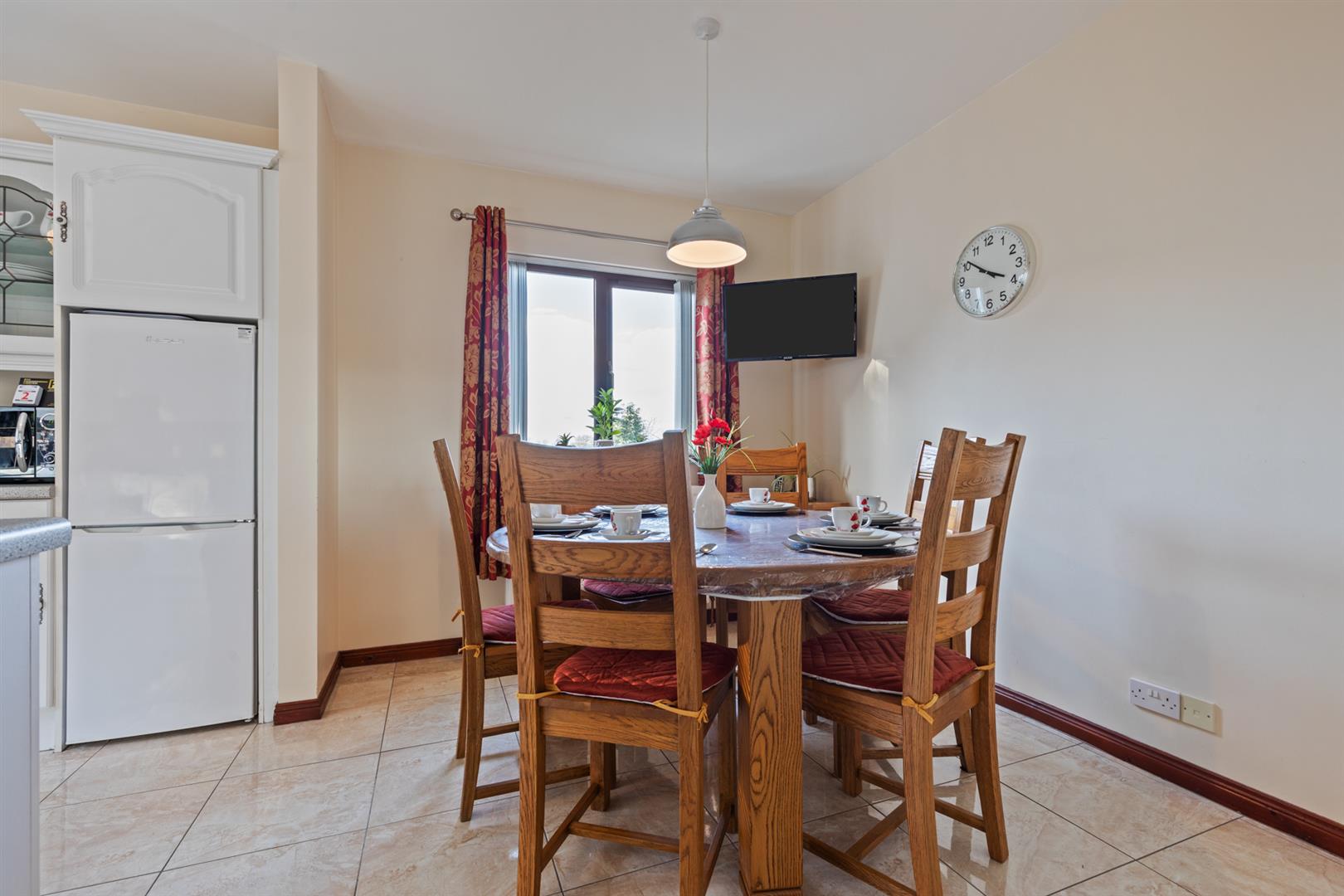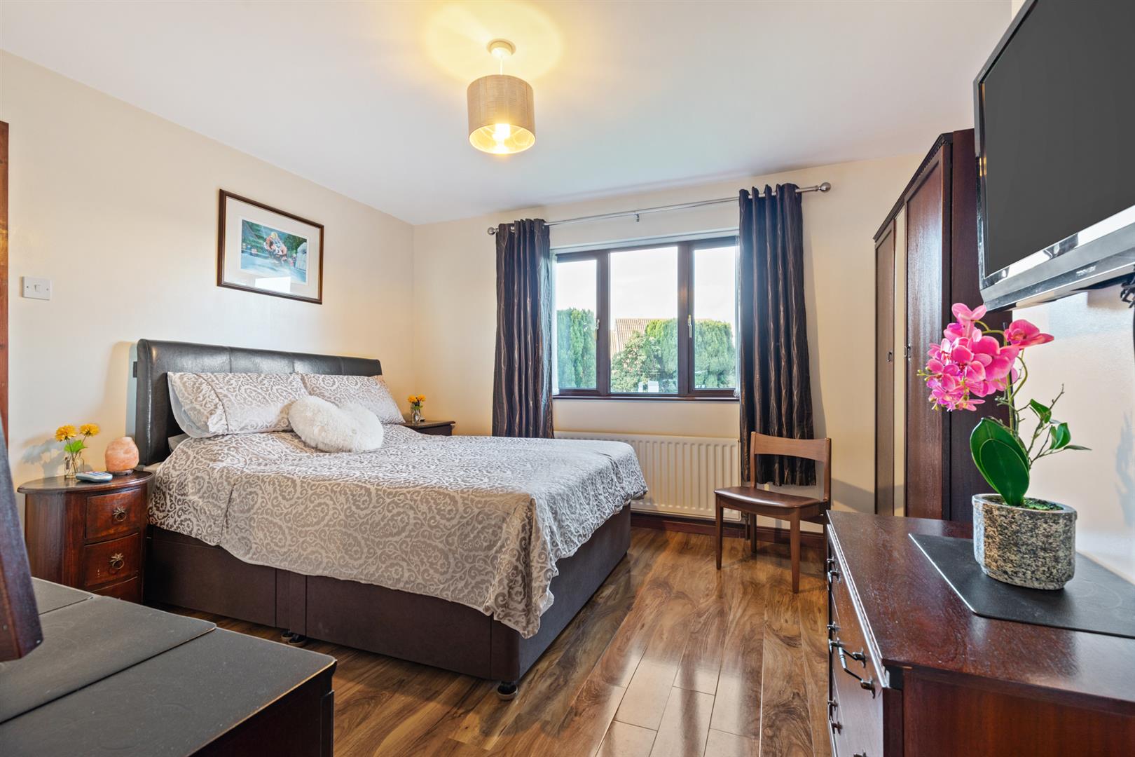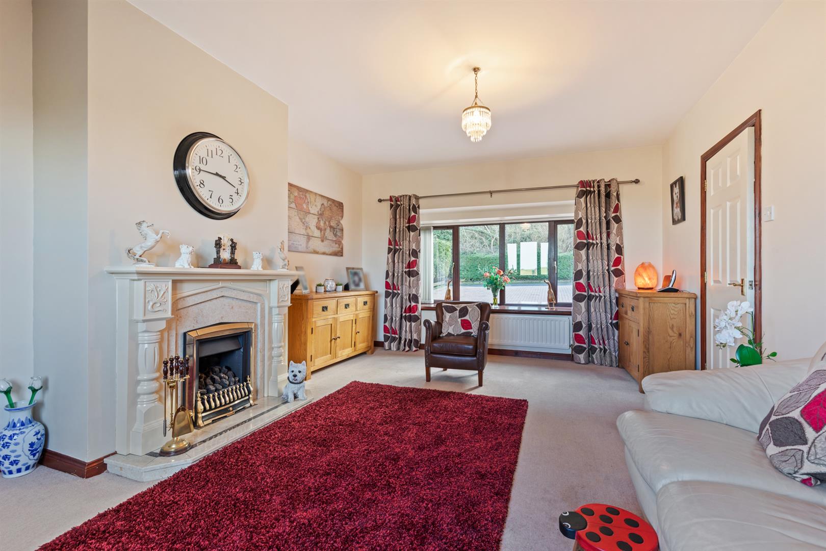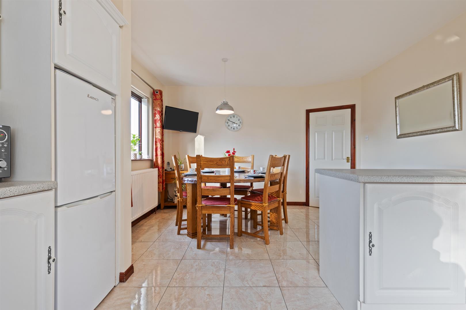 Externally, this home continues to impress. There is a garage and a large brick-paved driveway offering ample parking for multiple vehicles or a caravan. To the rear, a private patio area enjoys fantastic elevated views over Ballynahinch, creating the perfect setting for outdoor dining and relaxation. The enclosed garden is laid out in neat lawns, ideal for families and those seeking outdoor space.