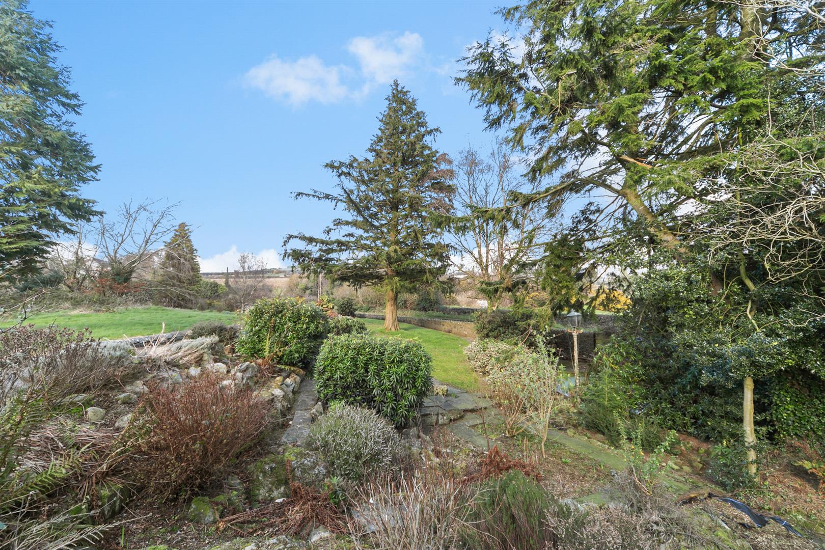To the front is a sweeping driveway with large shrub area, small pond, lawn area and mature trees. Also a small boiler house.