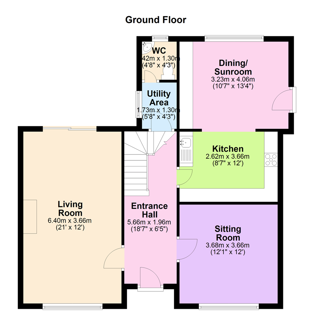 Utility Area 5'8" X 4'3" (1.73m X 1.30m)