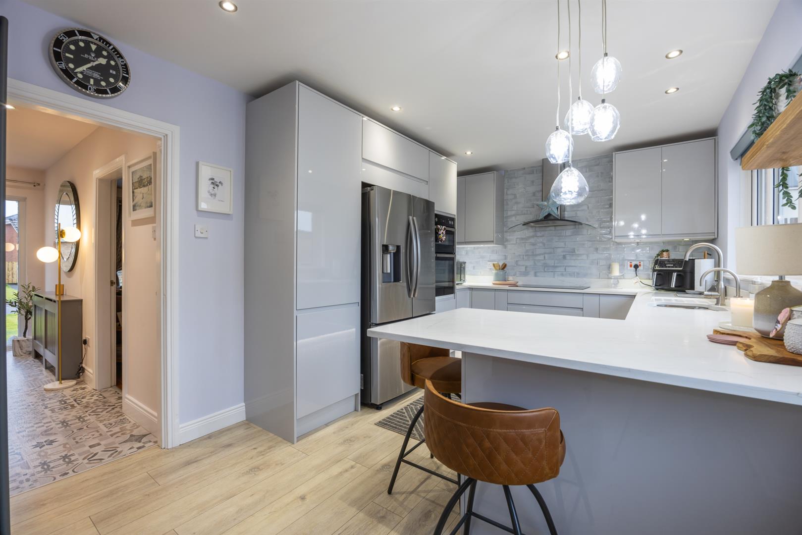 Internally the layout comprises an inviting entrance hall leading to a bright living room and a newly fitted luxury kitchen with generous dining area - a superb social hub for everyday family life and entertaining. There are four well-proportioned bedrooms, including a master bedroom with ensuite, plus a stylish family bathroom and separate w.c upstairs. Attention to detail and high-quality finishes are evident in every room.