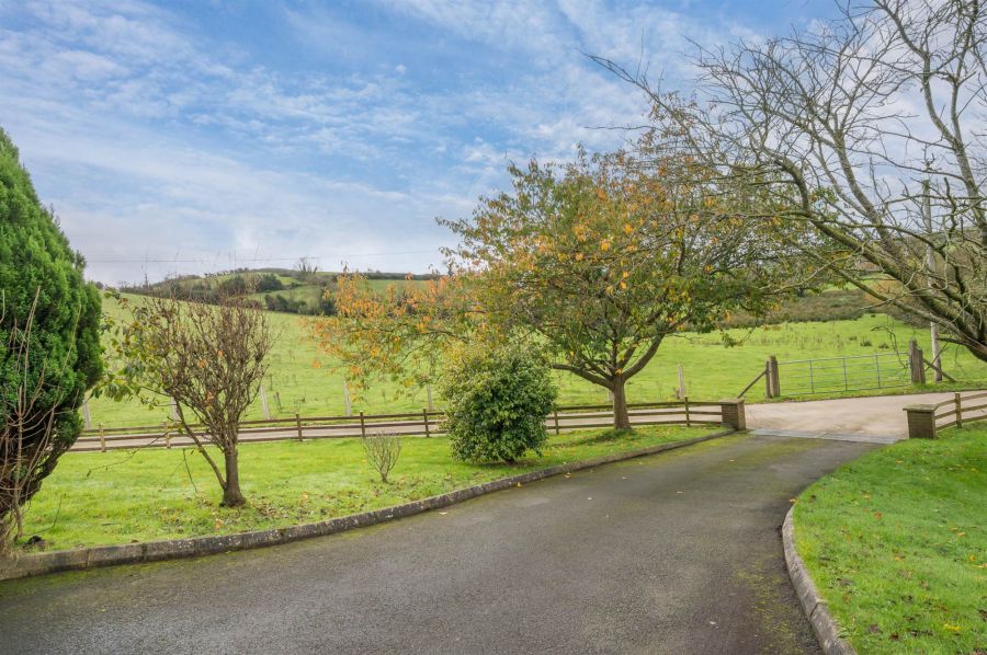 Gardens in lawn to front, side and rear, patio areas ideal for barbequing and outdoor entertaining. Excellent degree of privacy with mature trees, a running stream to the left side of the property and shrubs. Tarmac driveway and ample parking.