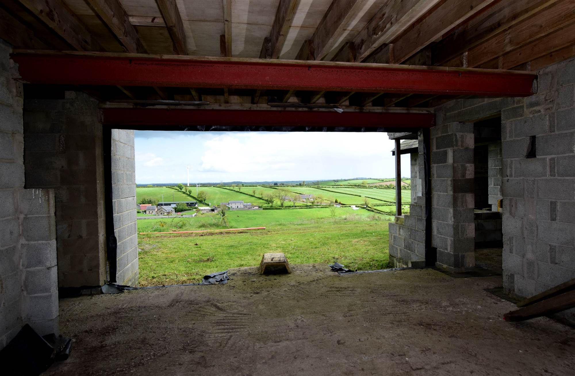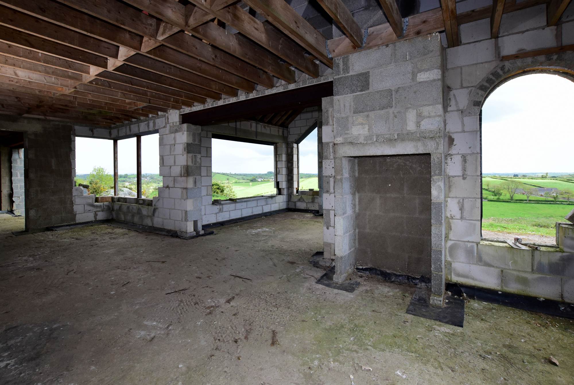 This rural style dwelling is partially completed to first fix level, having been constructed to a high specification throughout and includes additional land, all totalling c. 4.35 acres. The ground floor comprises flexible and generously proportioned living space to include living room, kitchen/dining/family area with sun lounge, family room, utility room, master bedroom with dressing room and ensuite, 2 further ensuite bedrooms and family bathroom. The first floor also has the potential to provide a further 3 bedrooms.