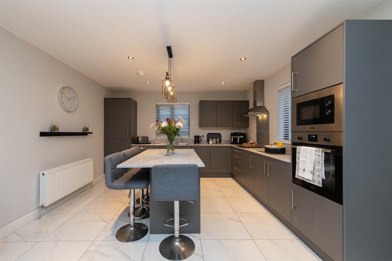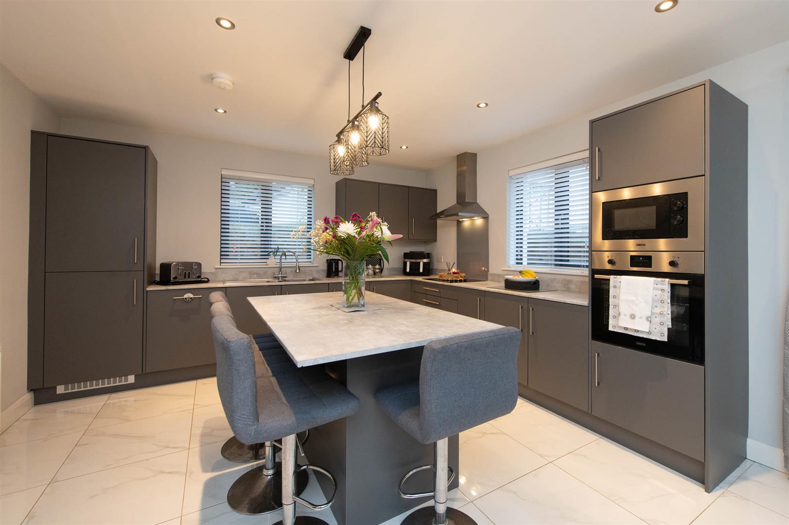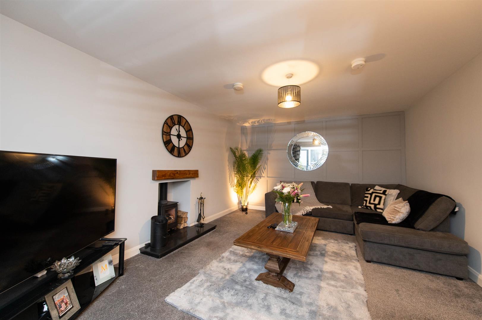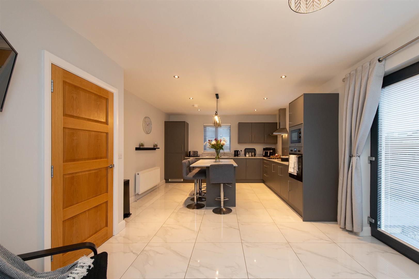 The property comprises a welcoming entrance hall with cloakroom, spacious living room with a wood burning stove, contemporary kitchen finished to the highest specification to include a built in oven, hob, fridge freezer and dishwasher open plan to living space, access to garage & utility room. Patio doors from the living area lead to the garden.