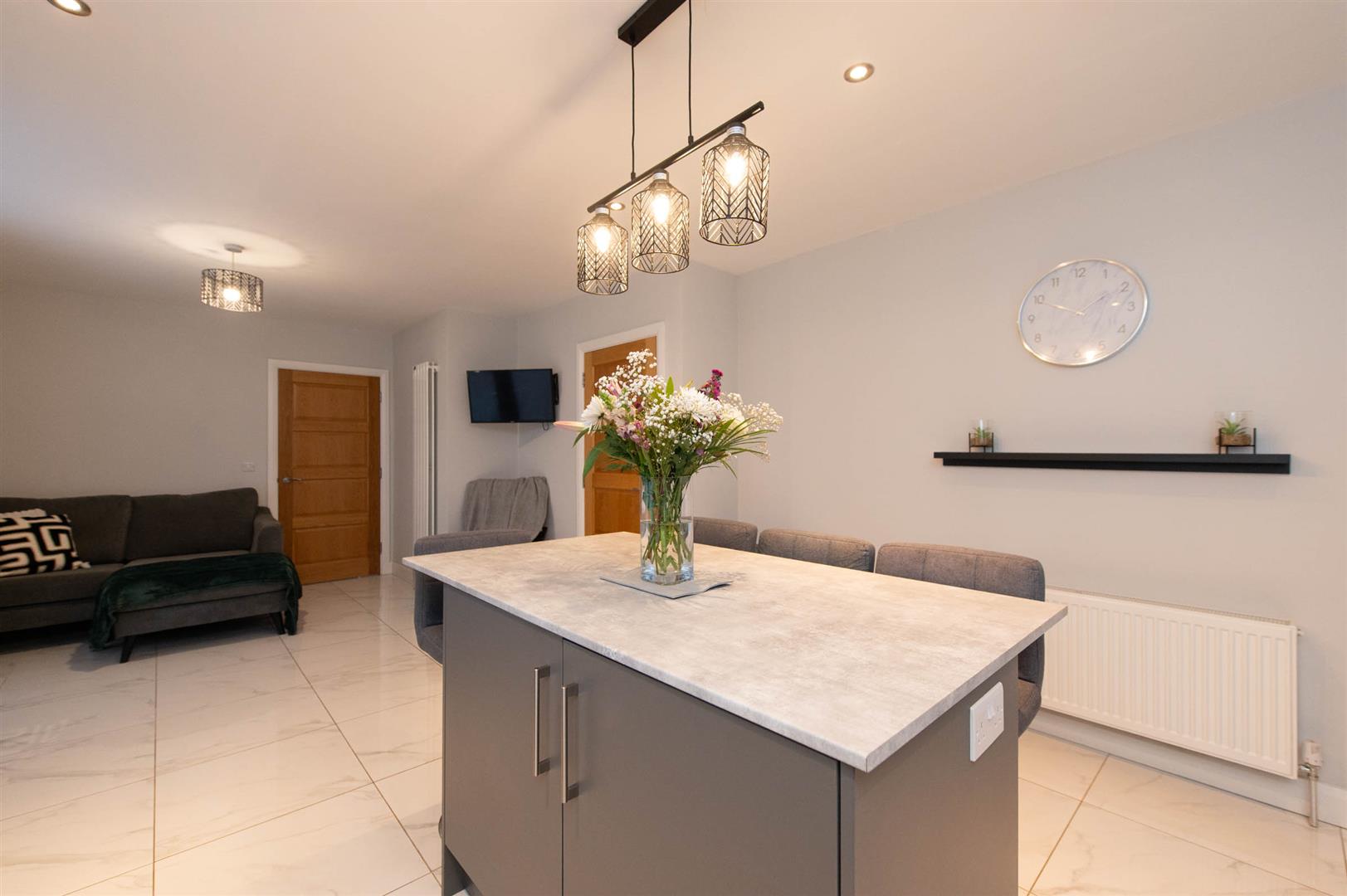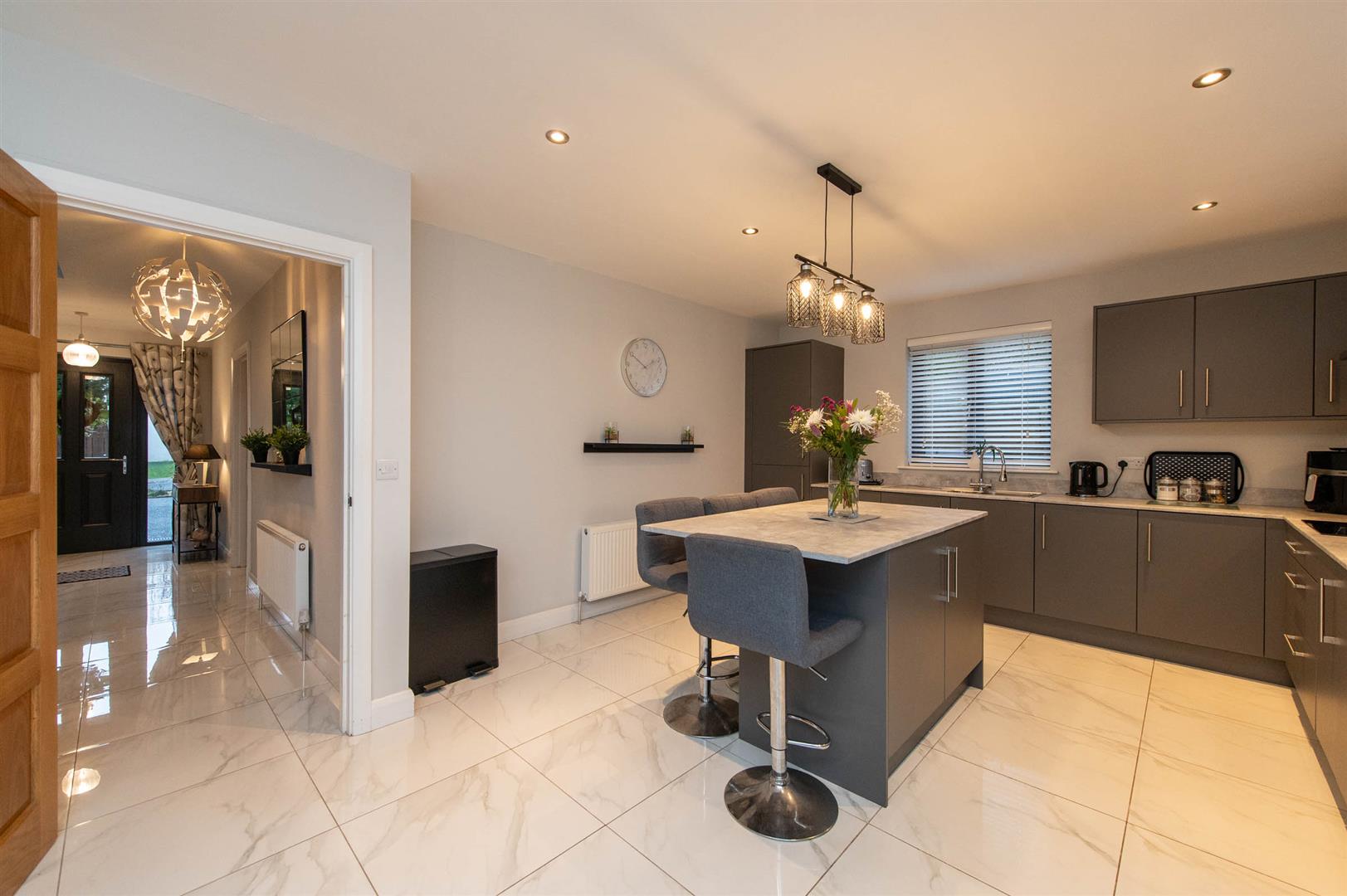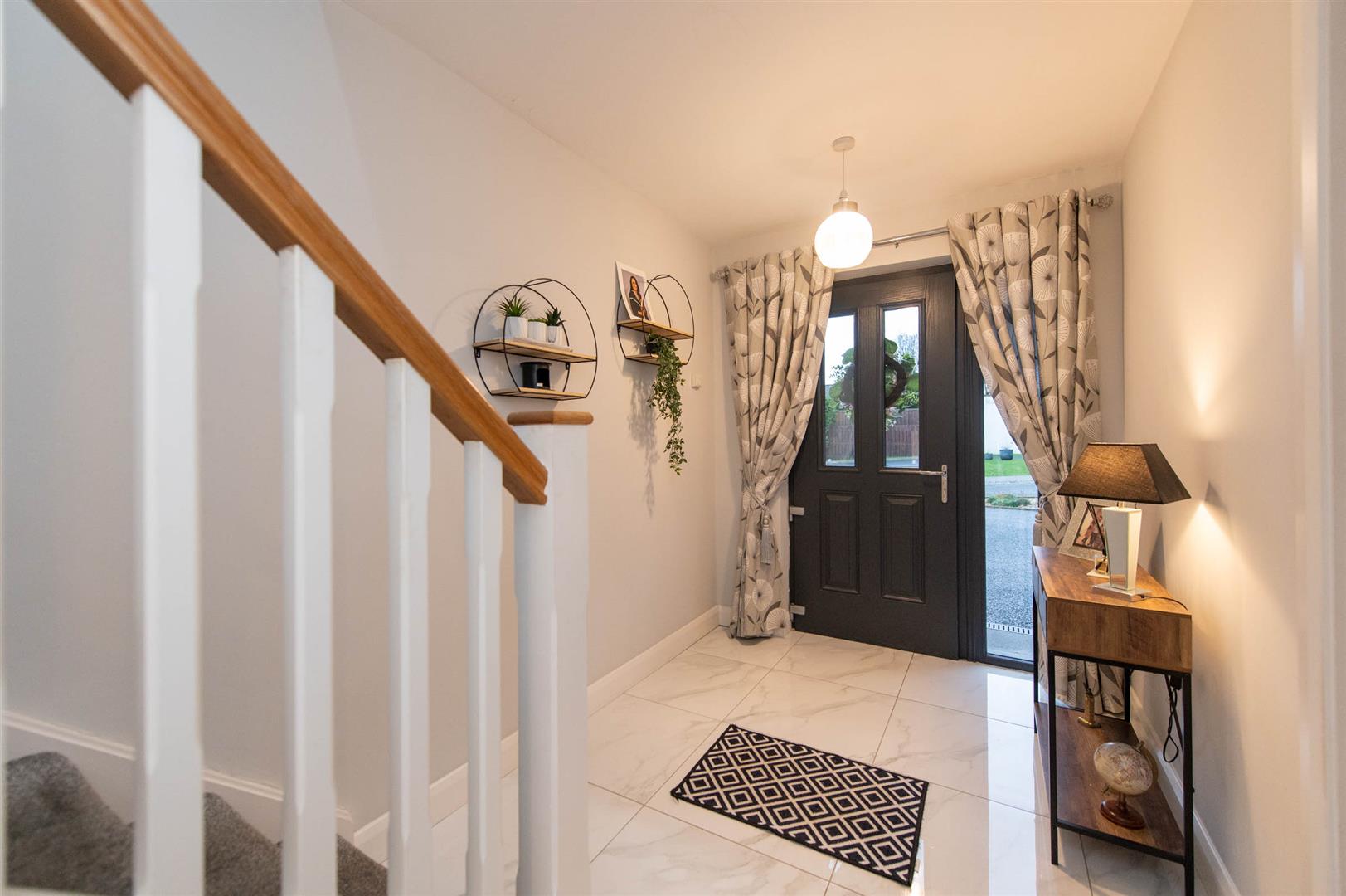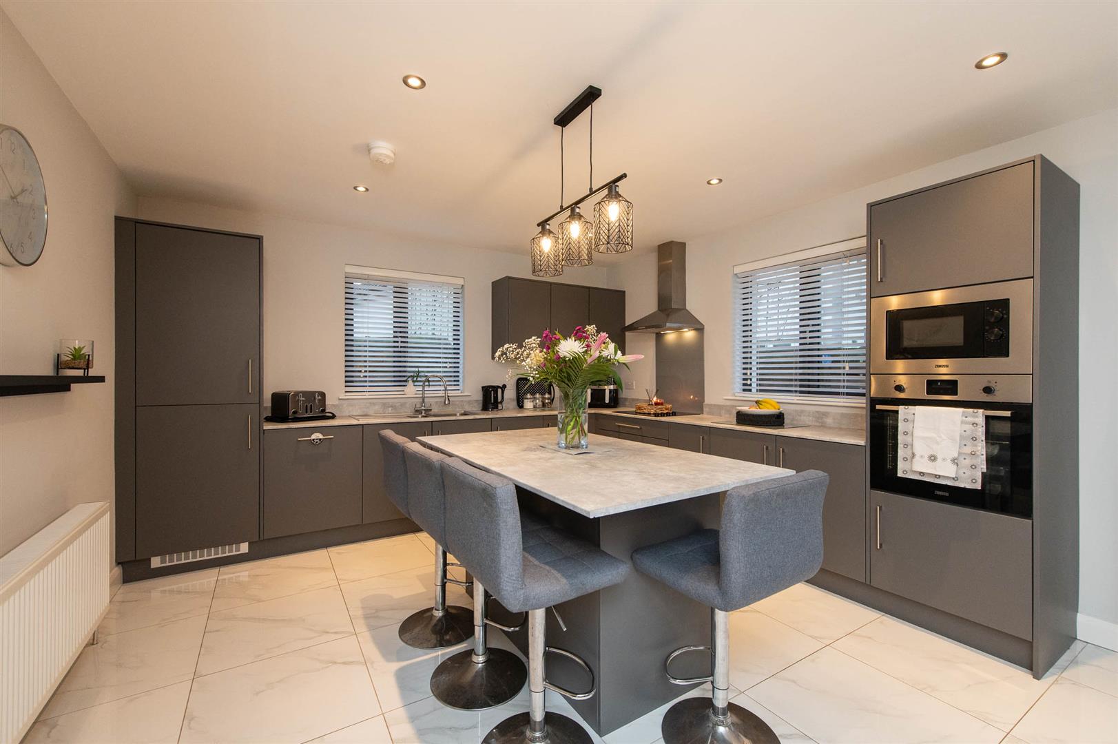 The property comprises a welcoming entrance hall with cloakroom, spacious living room with a wood burning stove, contemporary kitchen finished to the highest specification to include a built in oven, hob, fridge freezer and dishwasher open plan to living space, access to garage & utility room. Patio doors from the living area lead to the garden.