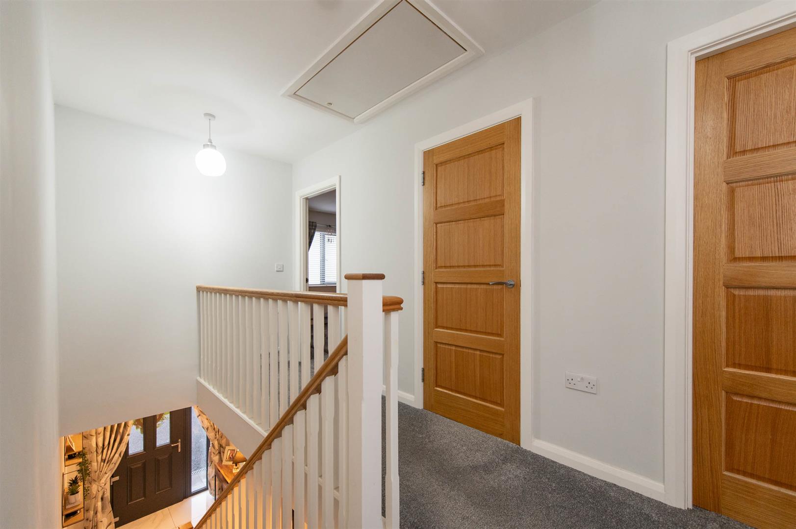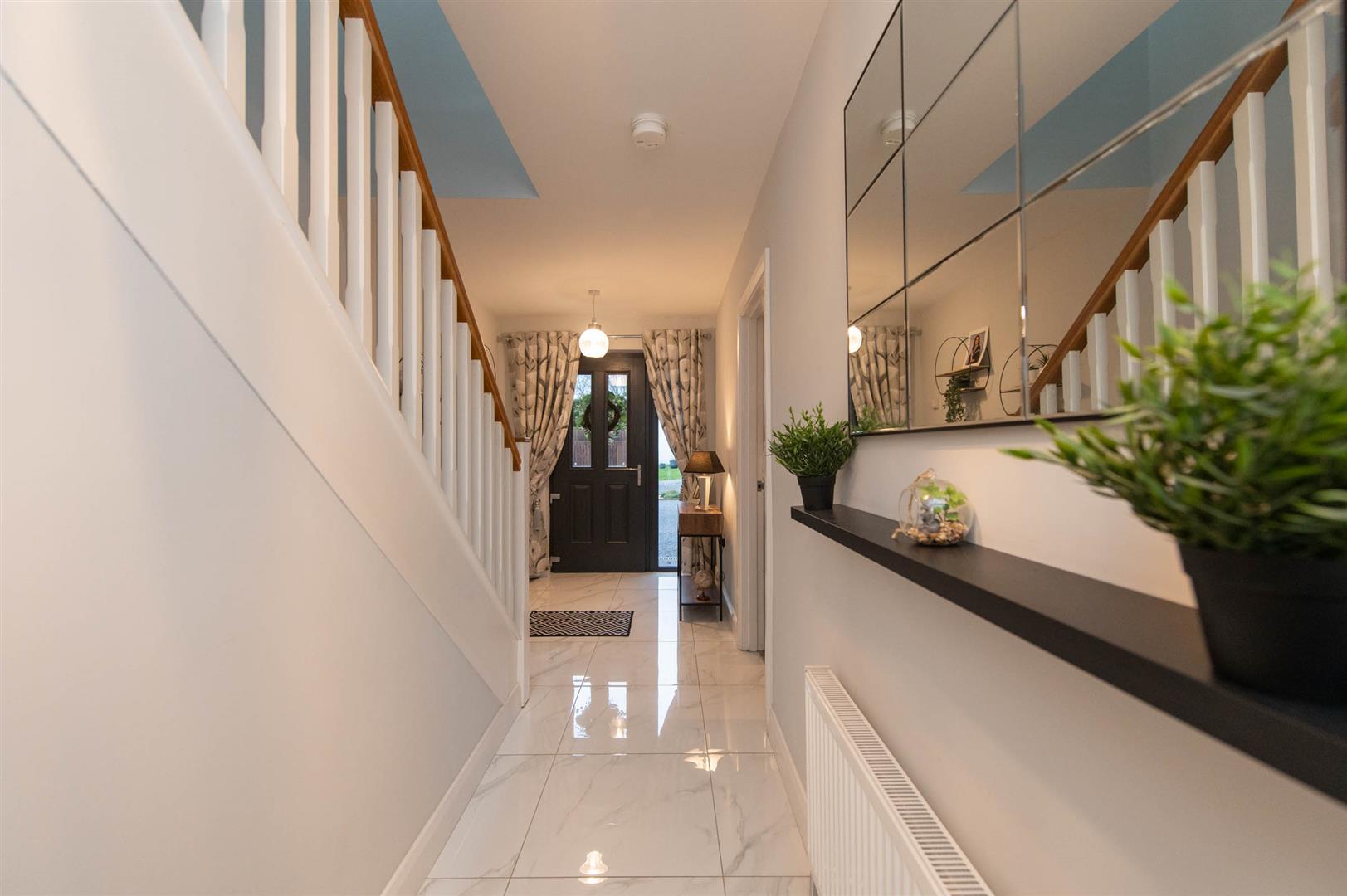 The first floor comprises four double bedrooms, two with build in wardrobes, a luxurious master bedroom with a dressing room and ensuite. The deluxe family bathroom comprises contemporary white suite, spacious corner shower, wall mounted wash hand basin and low flush w.c. quality tiled floor and splashbacks.