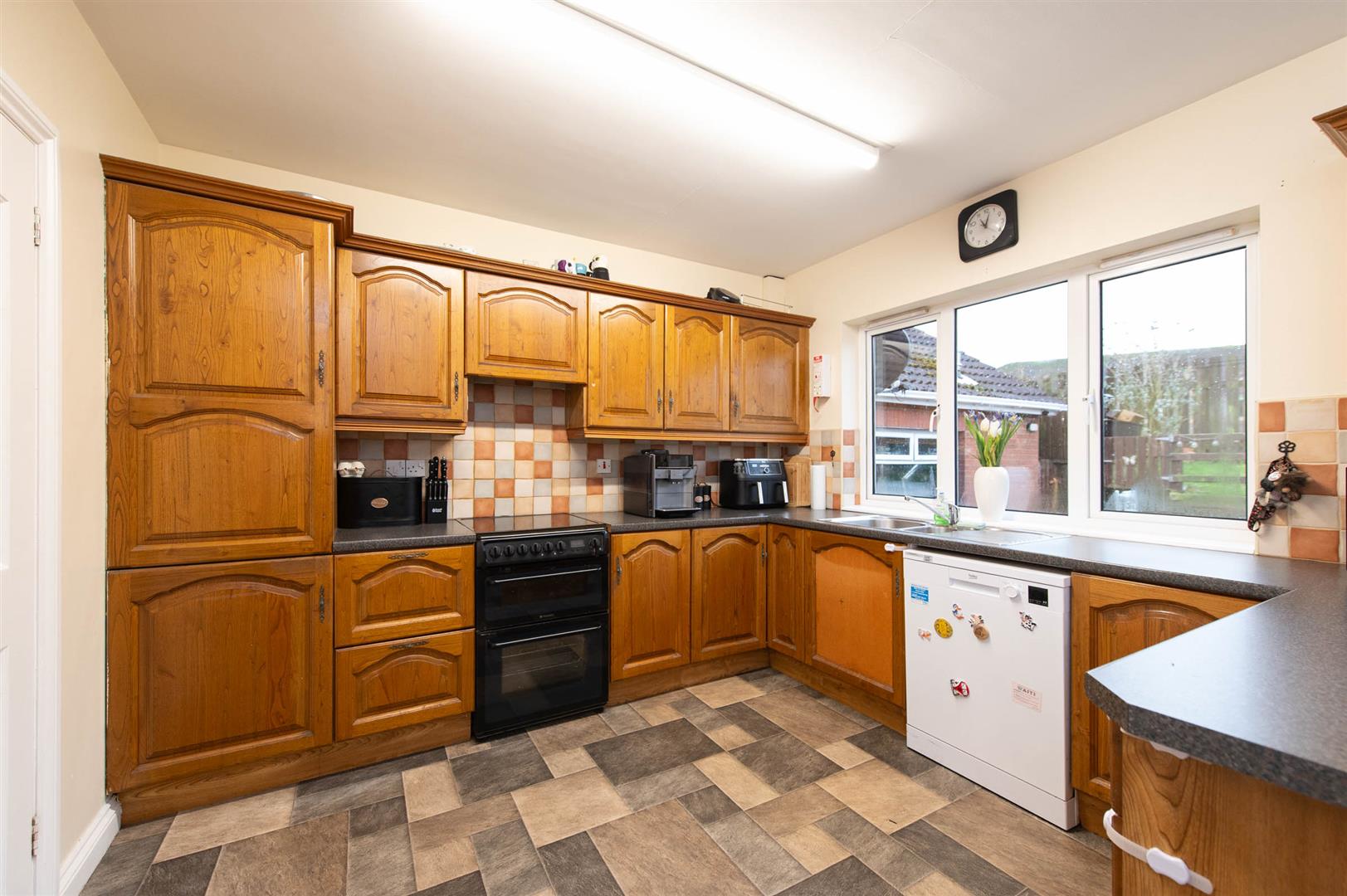 Set on a corner site, the property benefits from a sizeable garden, offering ample outdoor space for children to play or for gardening enthusiasts to cultivate their green thumbs. Additionally, the detached garage provides valuable storage or parking options, while the sizeable tarmac driveway ensures convenience for multiple vehicles.