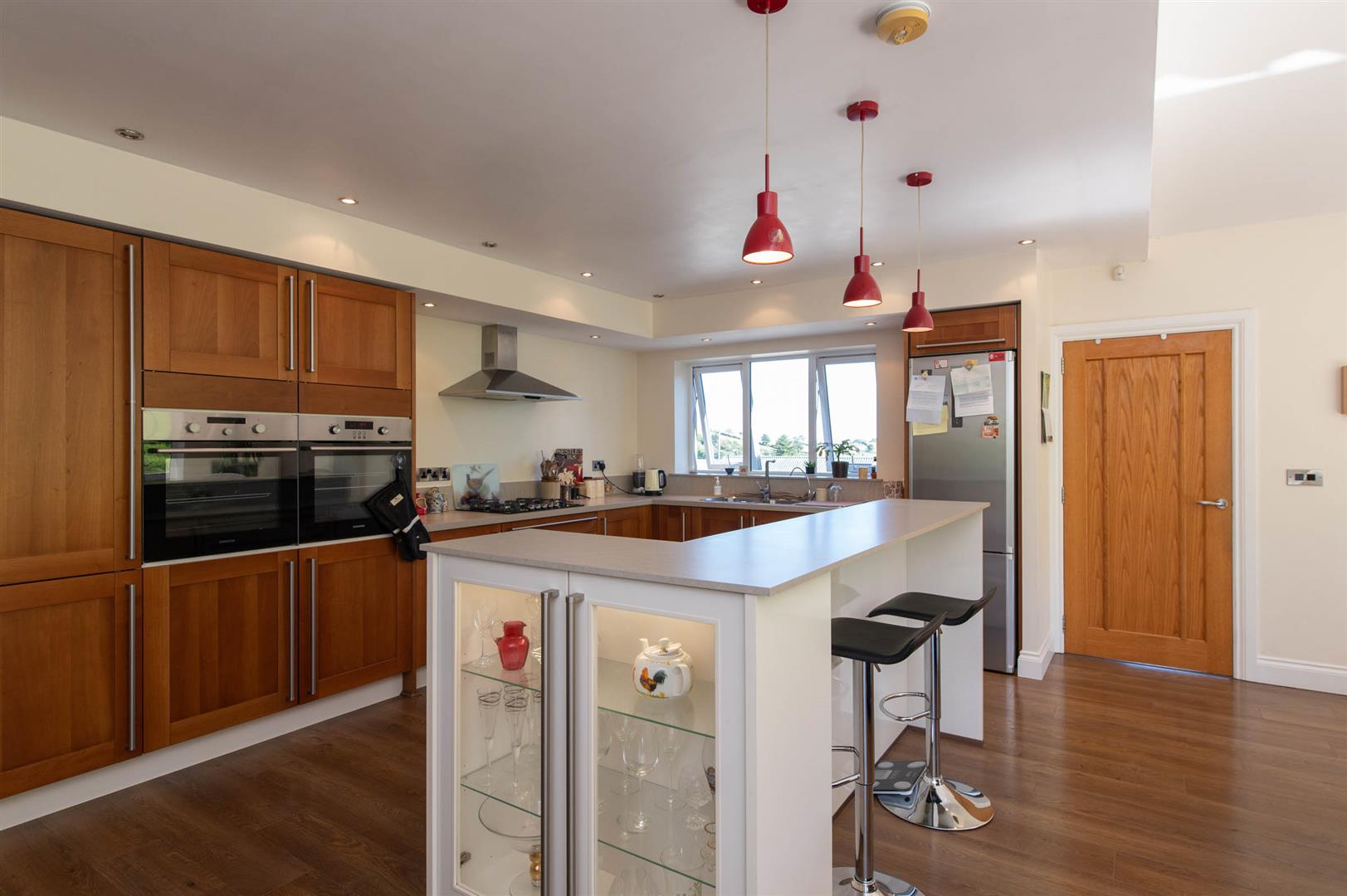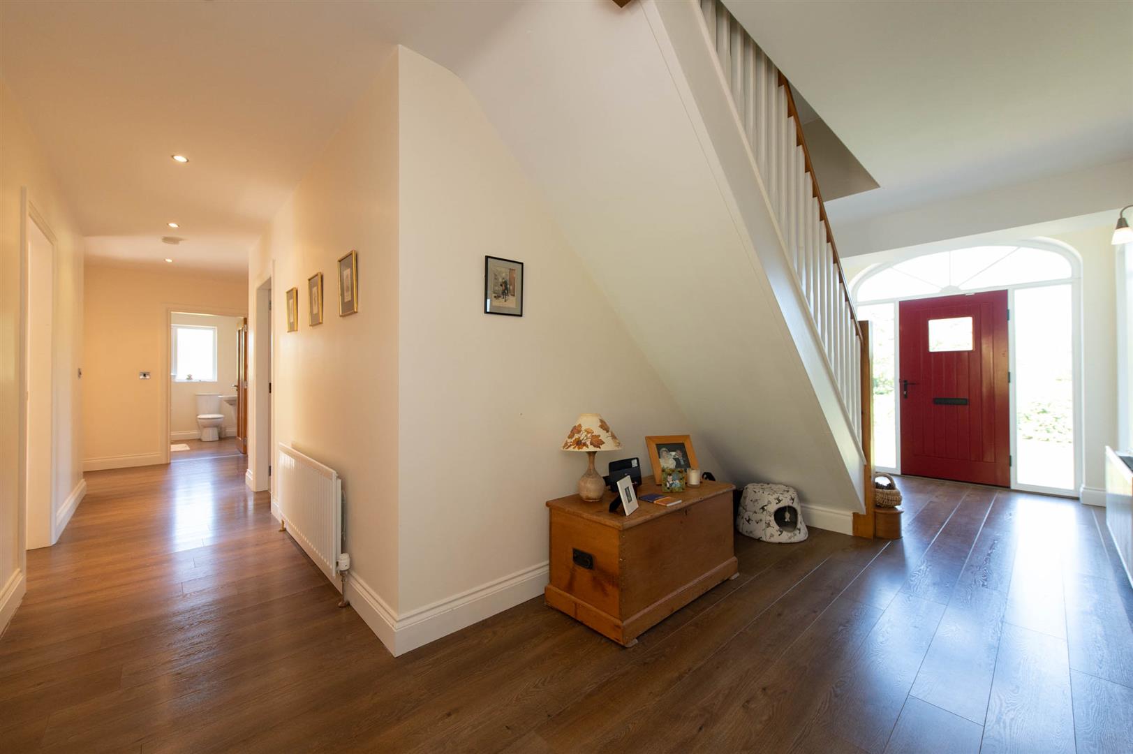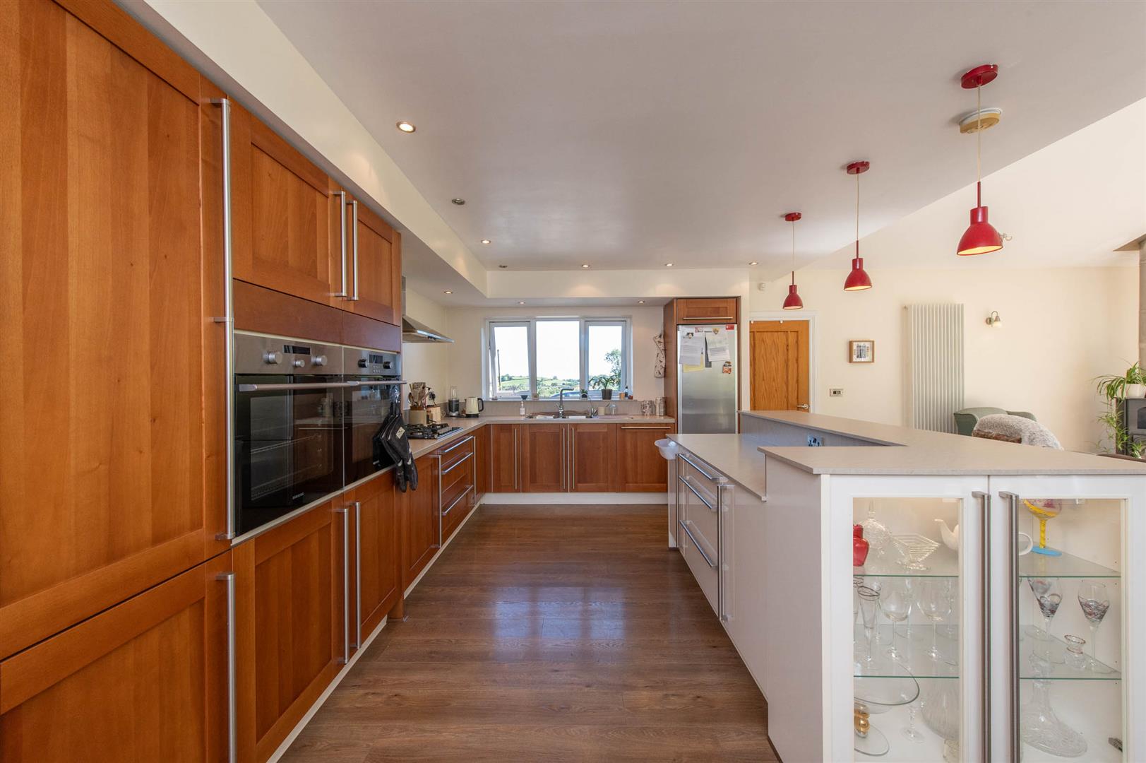 Step into a bright, spacious entrance hall that sets the tone for this beautiful home. The front-aspect lounge offers a spacious room with open fire. The heart of the home is the breath-taking, open-plan kitchen, dining, and living area. Featuring a vaulted ceiling and a woodburning stove, this space is bathed in natural light from expansive multi-panel windows. The stunning German-engineered Nobilia kitchen is equipped with premium high-and-low-level units, an integrated gas hob, double oven, and a dishwasher, all centered around a stepped island designed for both culinary prep and casual dining and access to the utility room. The ground floor is completed by three generously sized bedrooms including one with an ensuite and family bathroom. Upstairs, flexible living continues with two expansive bedrooms, both boasting private ensuite facilities. The master suite features a walk-in wardrobe.
