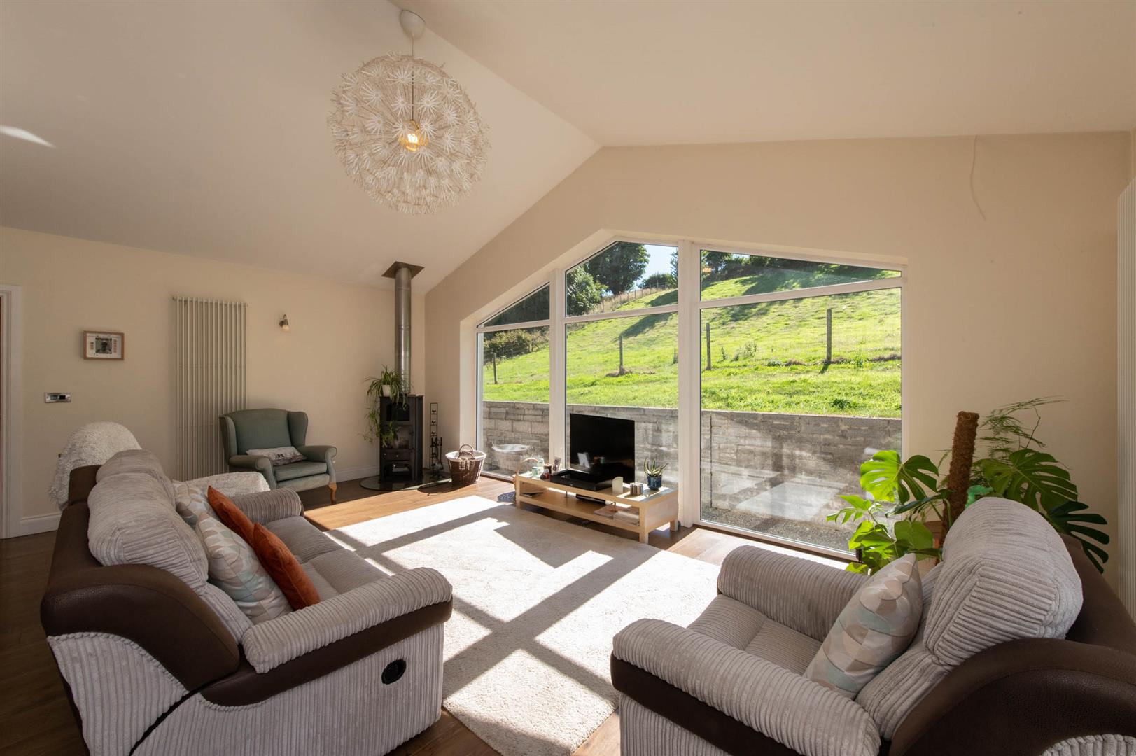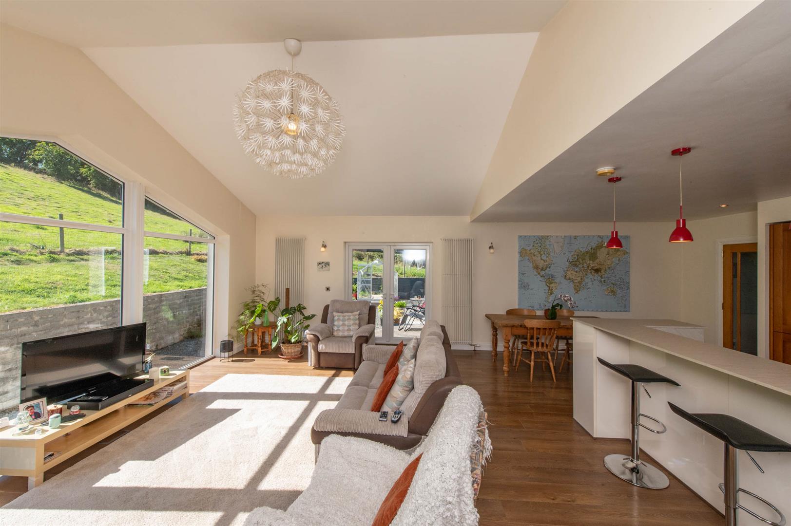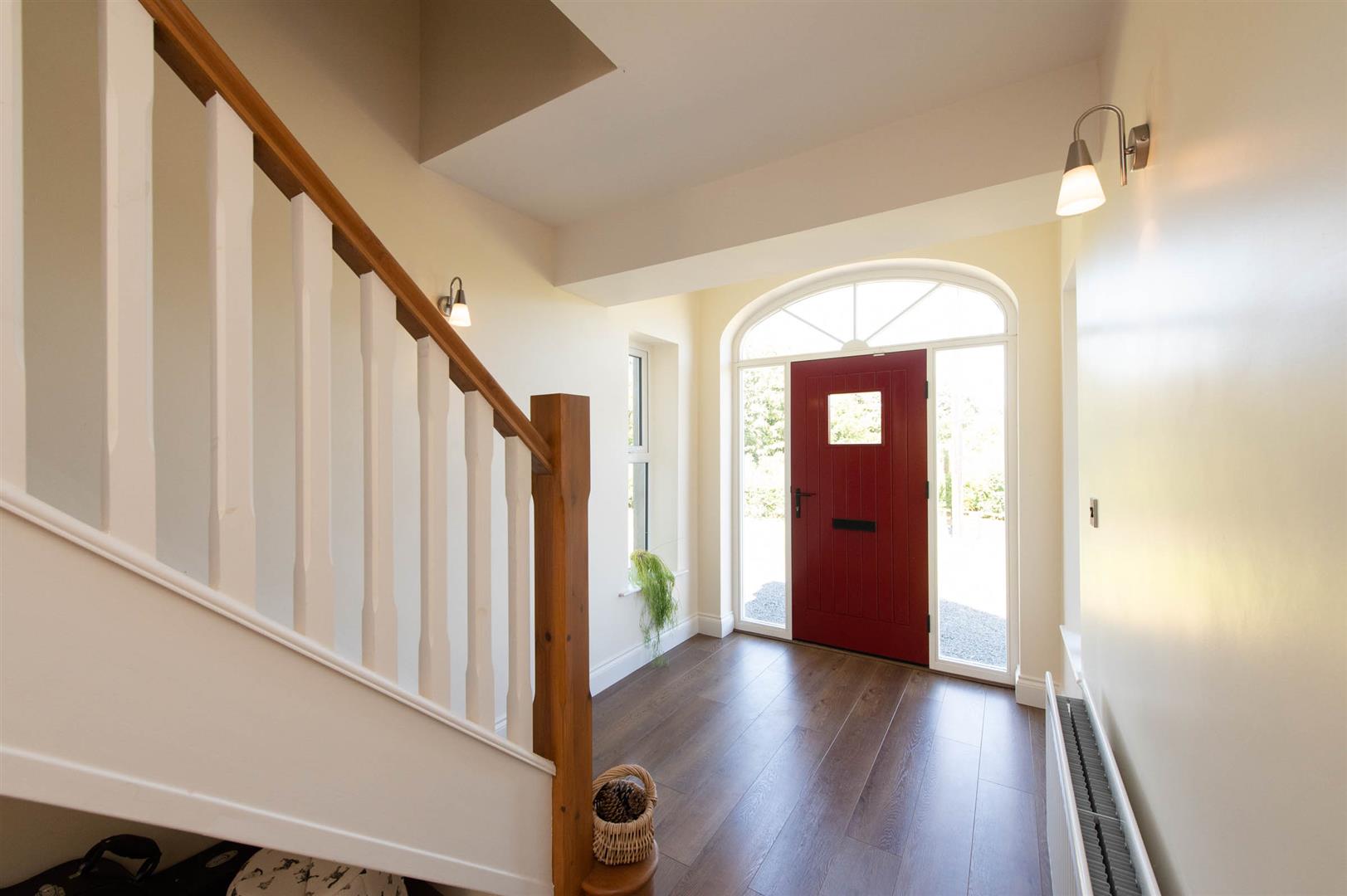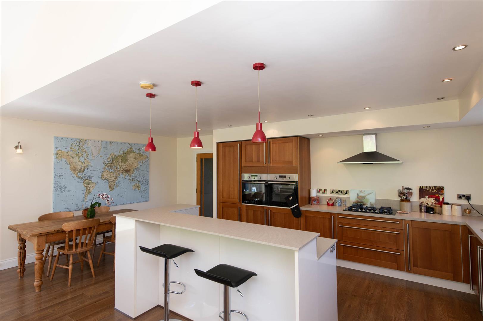 Step into a bright, spacious entrance hall that sets the tone for this beautiful home. The front-aspect lounge offers a spacious room with open fire. The heart of the home is the breath-taking, open-plan kitchen, dining, and living area. Featuring a vaulted ceiling and a woodburning stove, this space is bathed in natural light from expansive multi-panel windows. The stunning German-engineered Nobilia kitchen is equipped with premium high-and-low-level units, an integrated gas hob, double oven, and a dishwasher, all centered around a stepped island designed for both culinary prep and casual dining and access to the utility room. The ground floor is completed by three generously sized bedrooms including one with an ensuite and family bathroom. Upstairs, flexible living continues with two expansive bedrooms, both boasting private ensuite facilities. The master suite features a walk-in wardrobe.